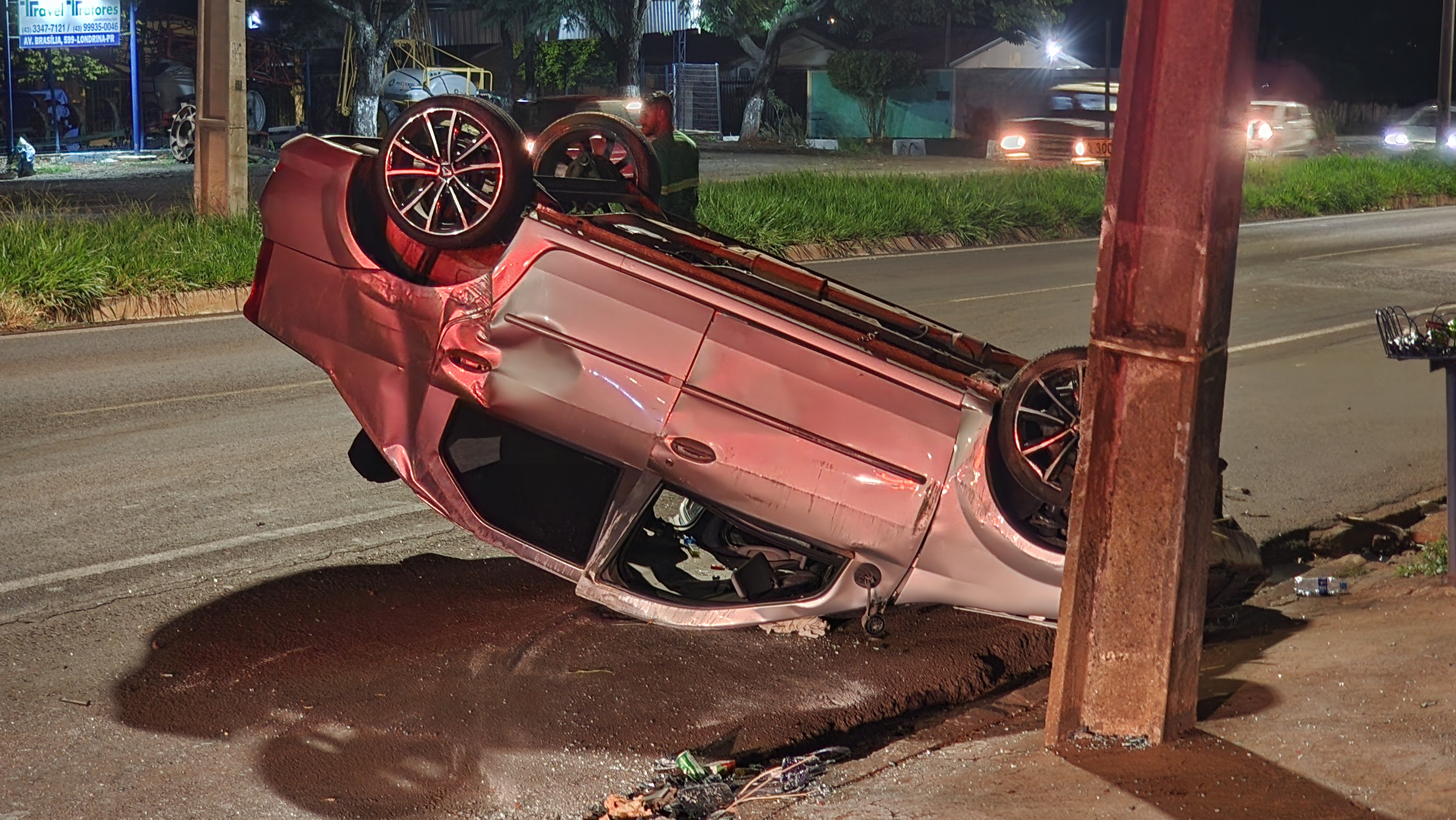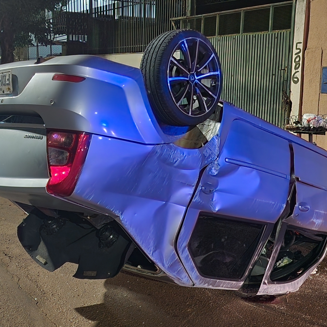 O veículo, um Renault Logan com placas de Hortolândia (SP), seguia no sentido Londrina/Ibiporã quando capotou logo após o pontilhão da avenida Tiradentes, na região oeste da cidade.