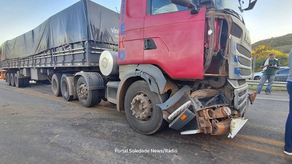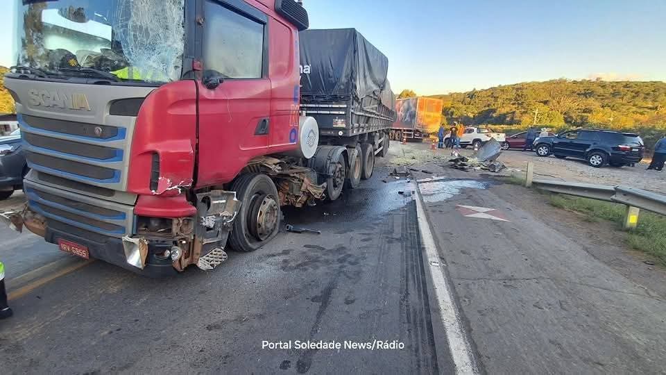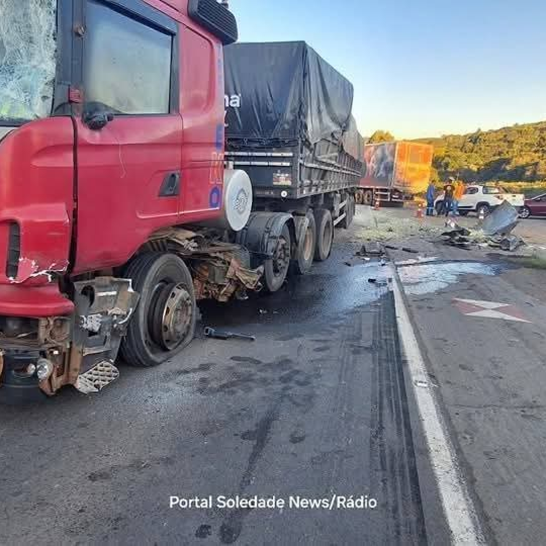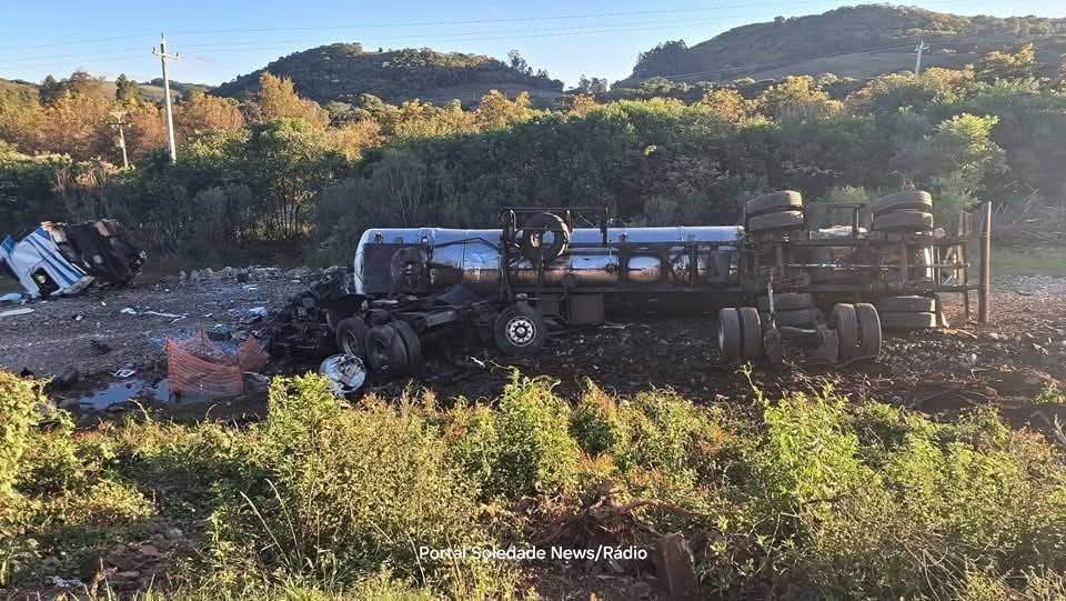 A colisão envolveu duas carretas — uma delas, um bitrem carregado com laticínios que seguia no sentido Mormaço–Soledade — e um caminhão carregado com grãos, que realizava uma ultrapassagem em curva. Segundo informações preliminares, o caminhão de grãos trafegava atrás de um ônibus e tentou concluir a manobra quando colidiu frontalmente com a carreta que vinha em sentido contrário. Uma caminhonete Hilux, que estava entre os dois caminhões, foi atingida na traseira.