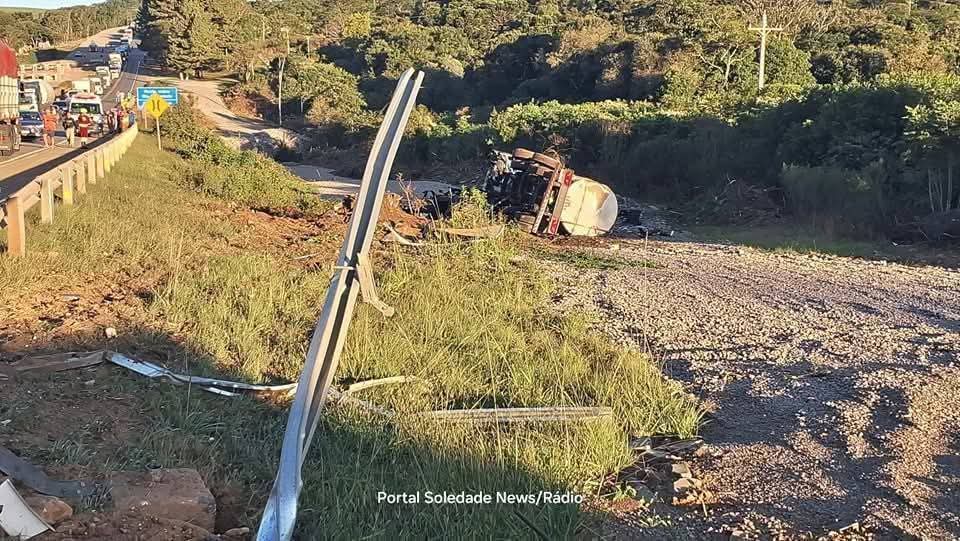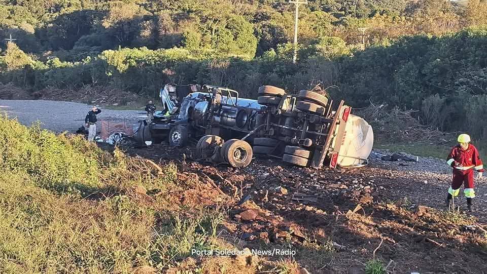 Na tarde desta terça-feira (13), um grave acidente de trânsito foi registrado na BR-386, entre os municípios de Mormaço e Soledade, em um trecho de curva acentuada próximo ao acesso a Mormaço, onde ocorrem obras de duplicação da rodovia.