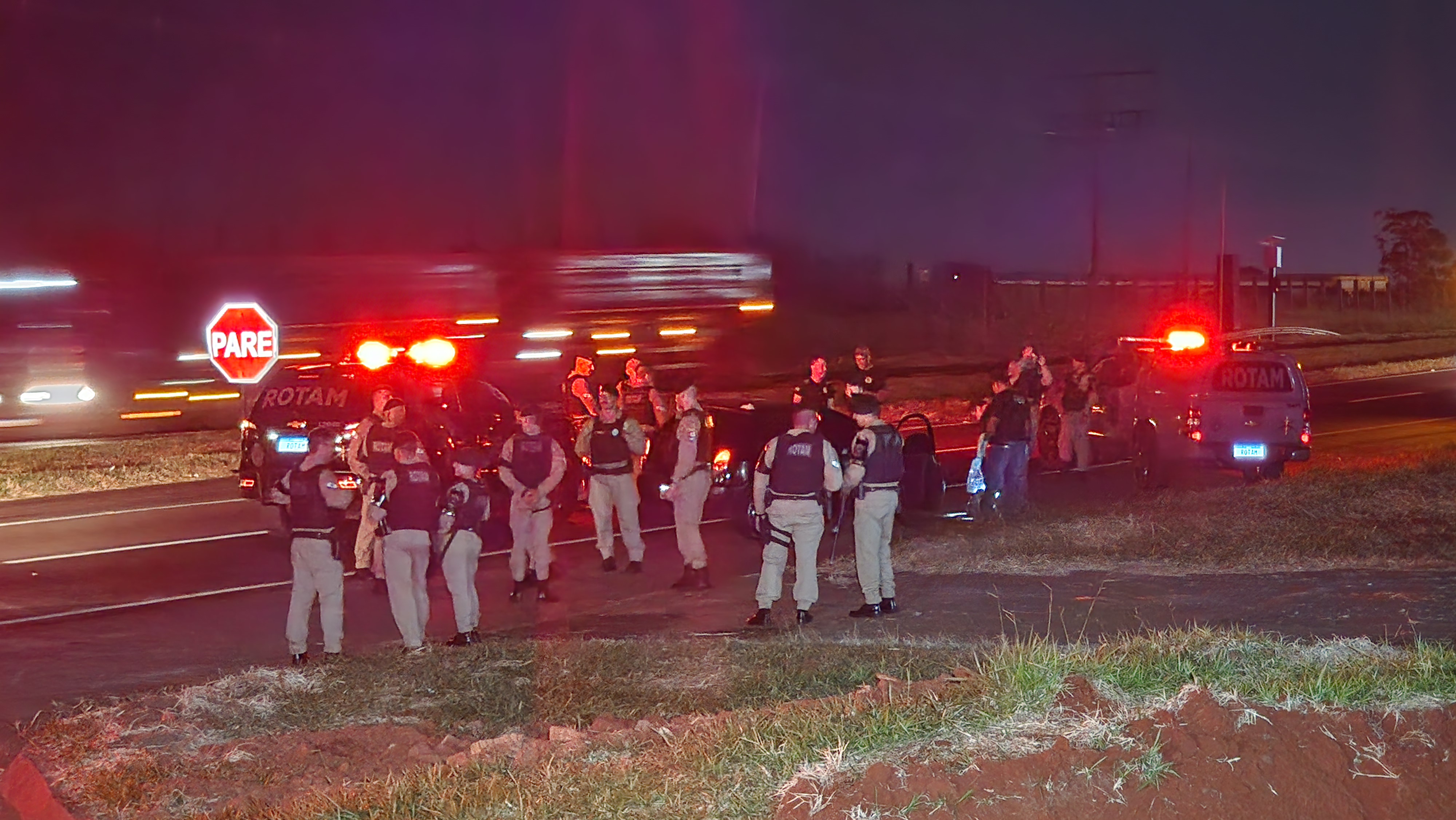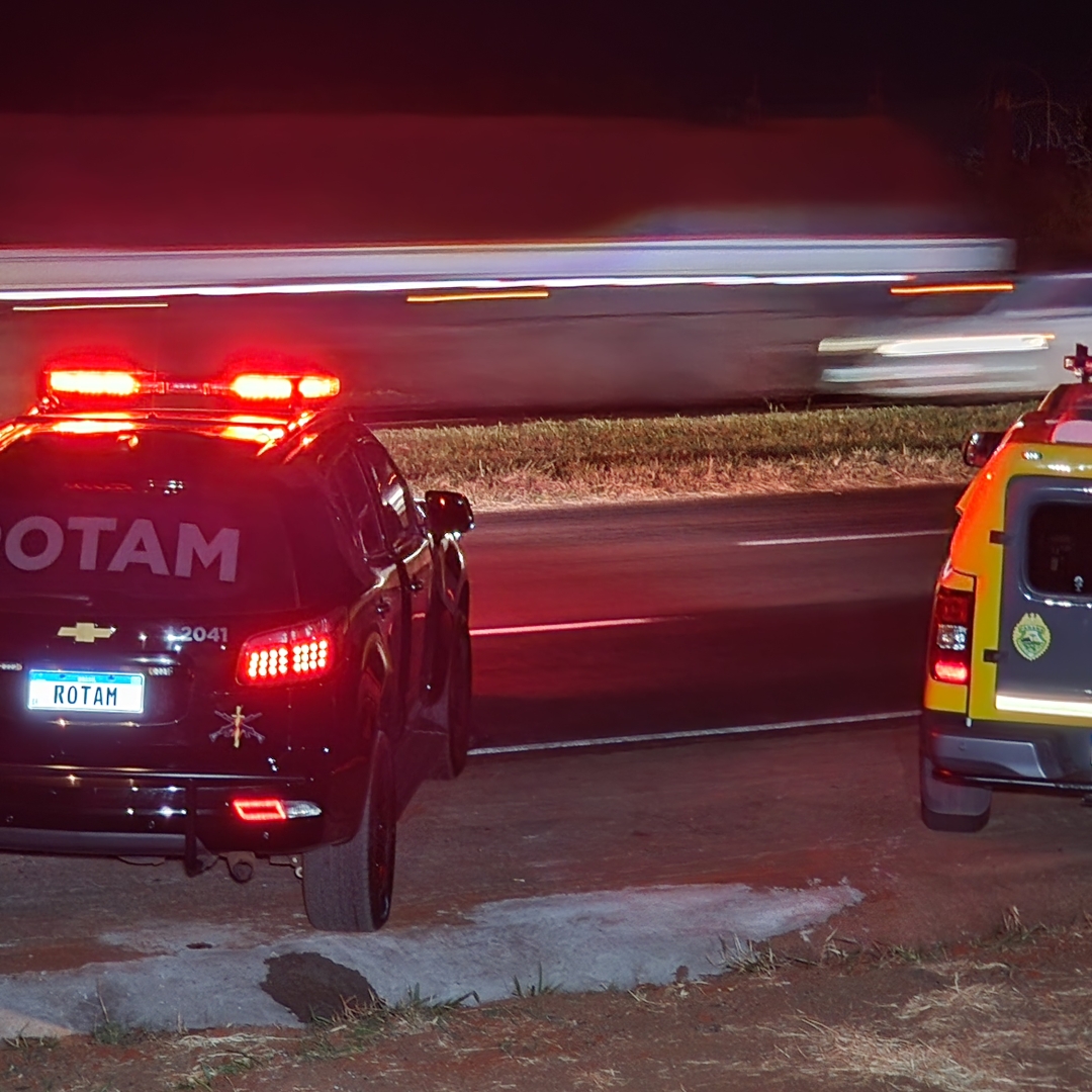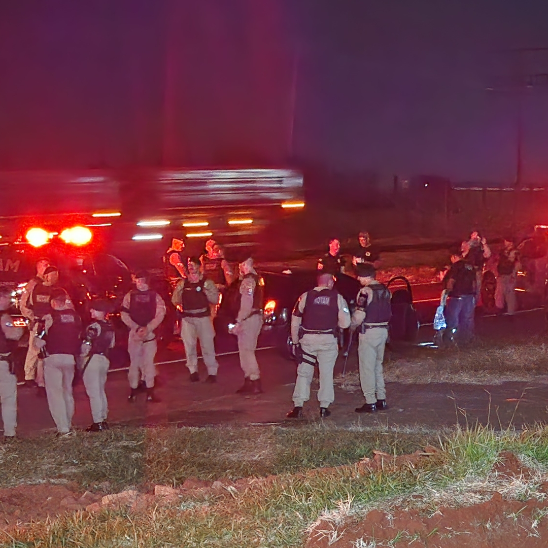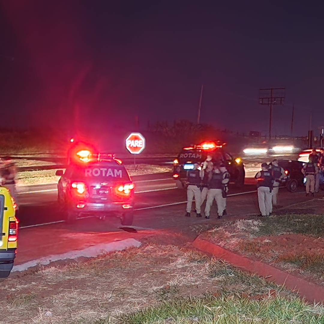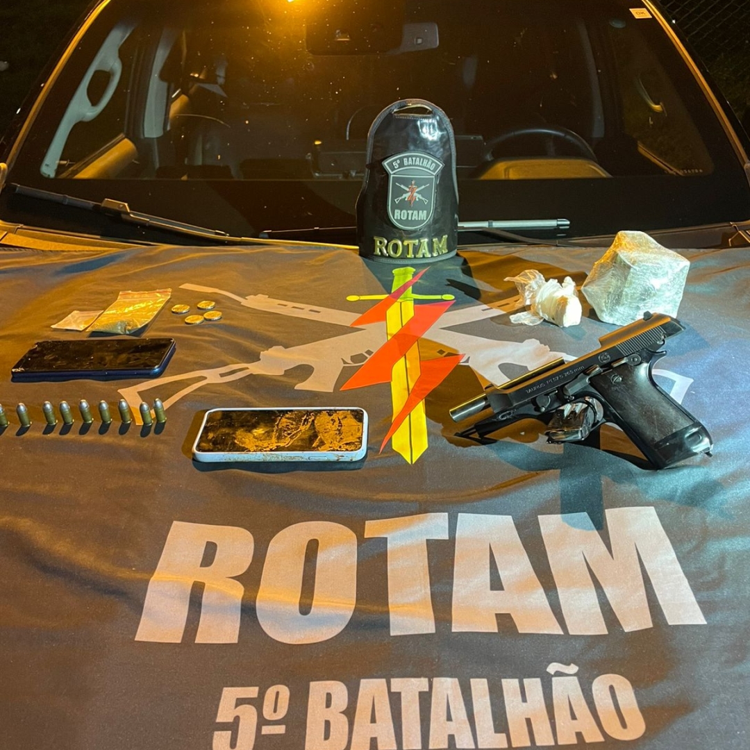 Diante das informações, as equipes da Rotam intensificaram o patrulhamento na rodovia e identificaram um veículo com as características repassadas na denúncia. Ao tentar realizar a abordagem, o motorista tentou fugir, mas foi alcançado. Segundo a PM, o suspeito reagiu, apontando uma arma de fogo na direção da equipe, que respondeu à ameaça.
