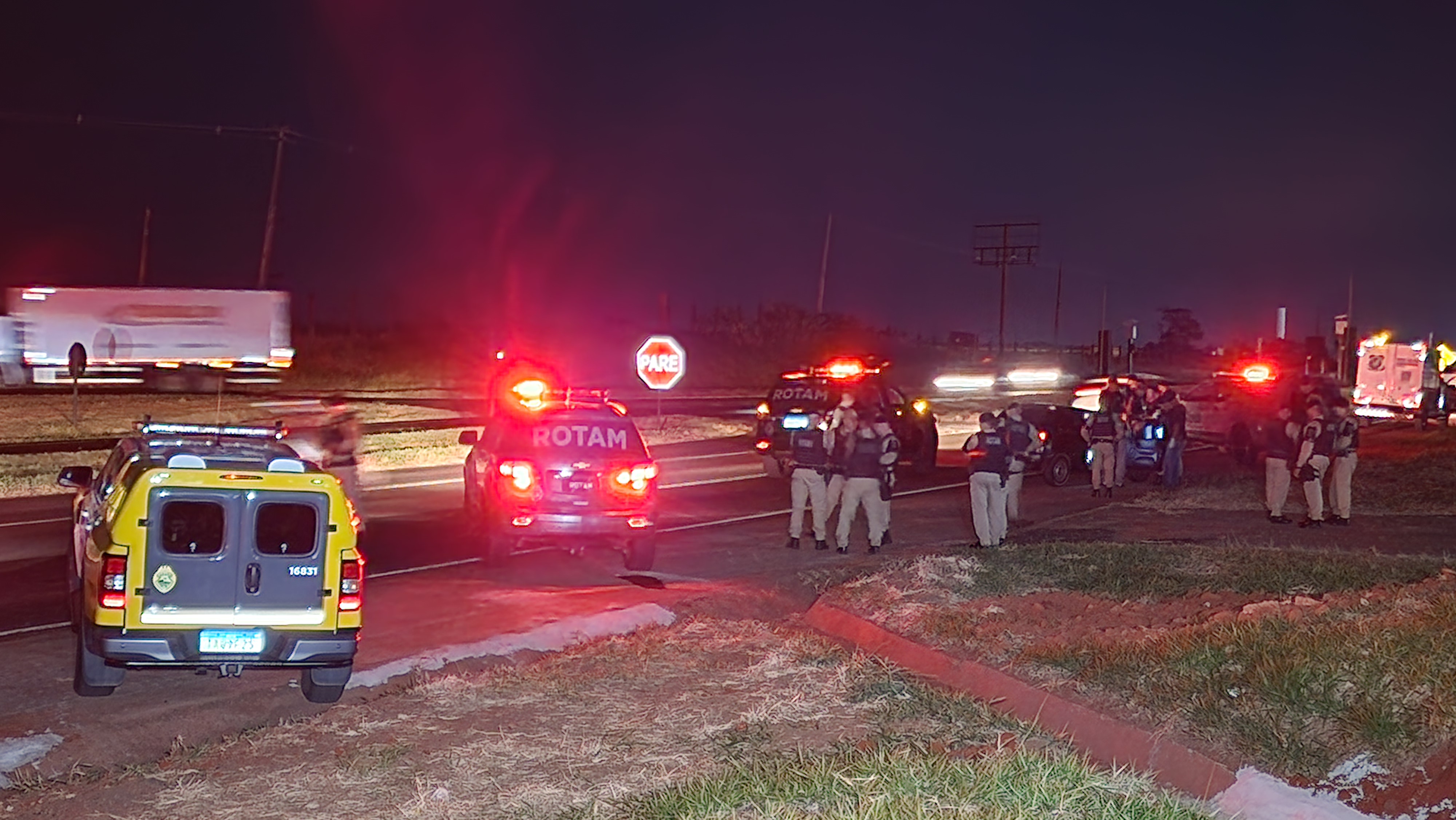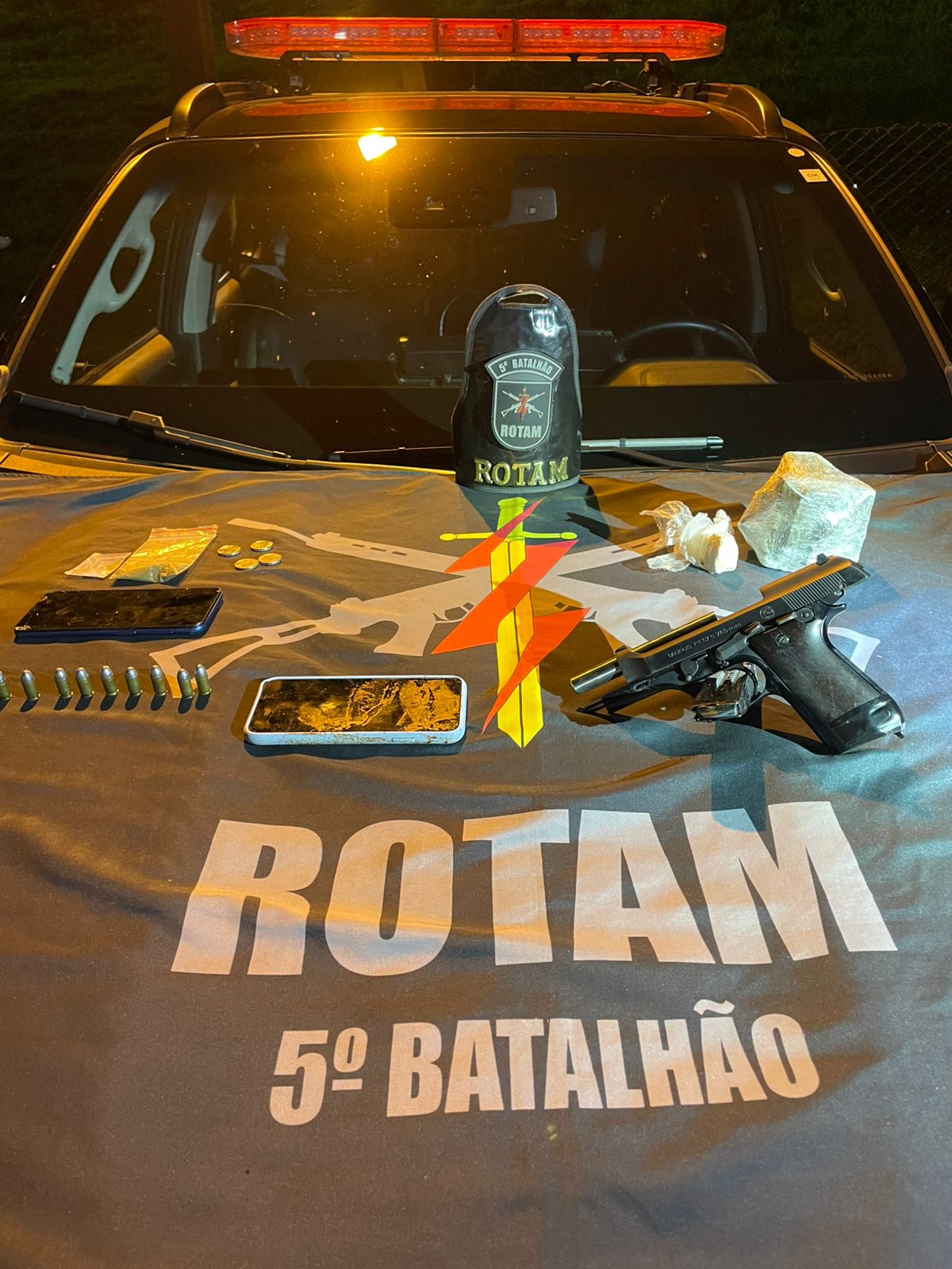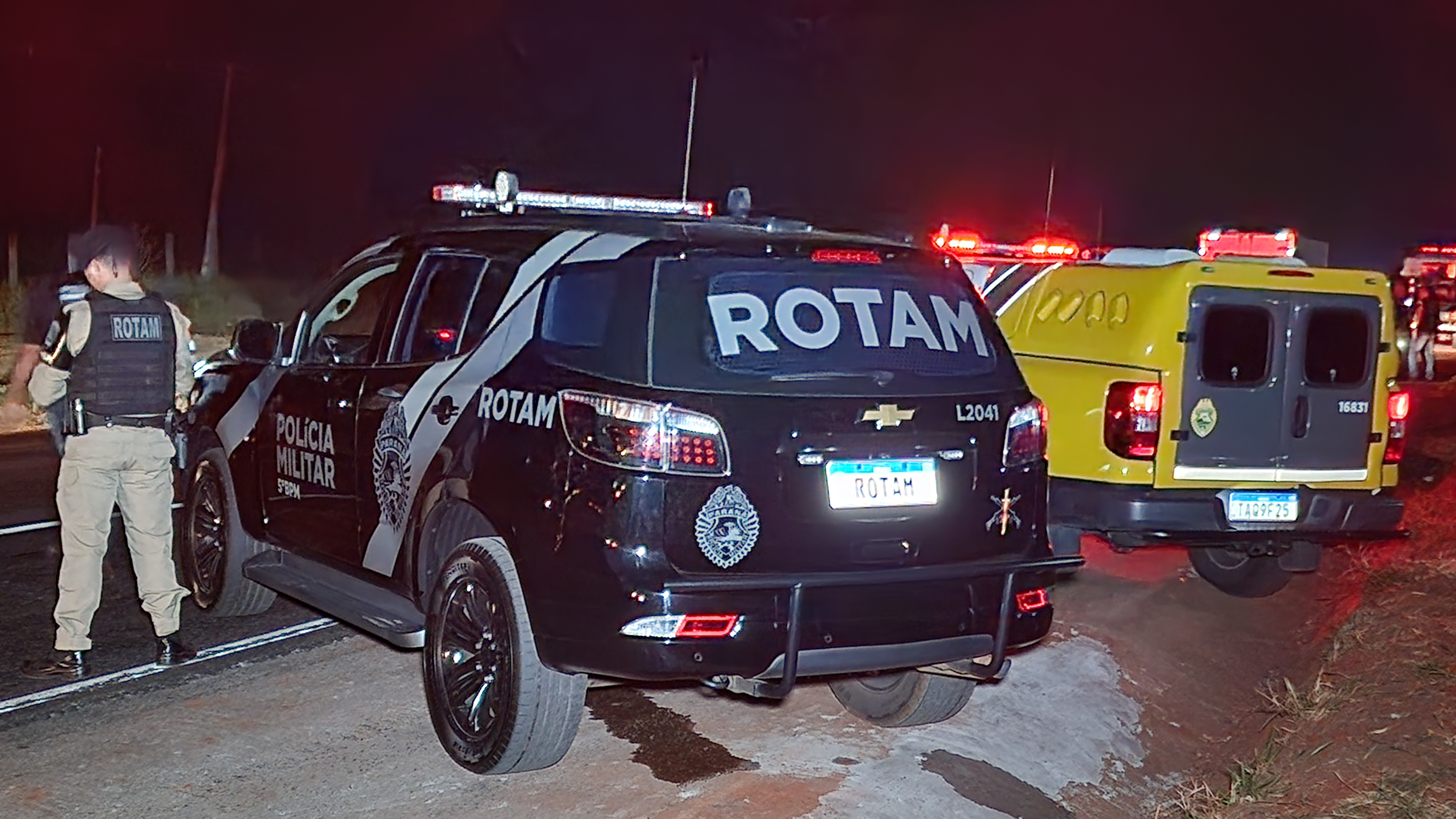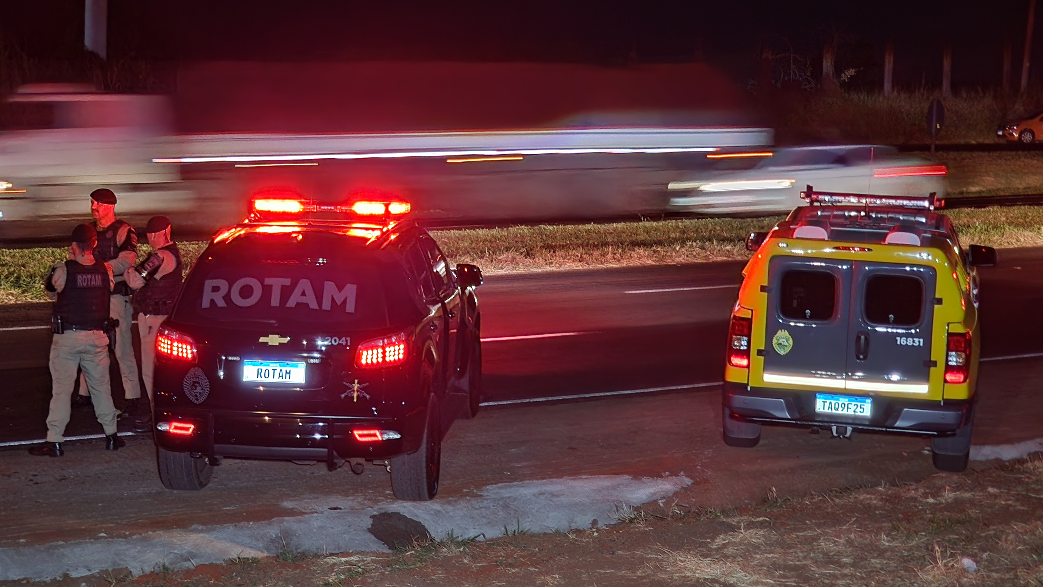 Diante das informações, as equipes da Rotam intensificaram o patrulhamento na rodovia e identificaram um veículo com as características repassadas na denúncia. Ao tentar realizar a abordagem, o motorista tentou fugir, mas foi alcançado. Segundo a PM, o suspeito reagiu, apontando uma arma de fogo na direção da equipe, que respondeu à ameaça.
