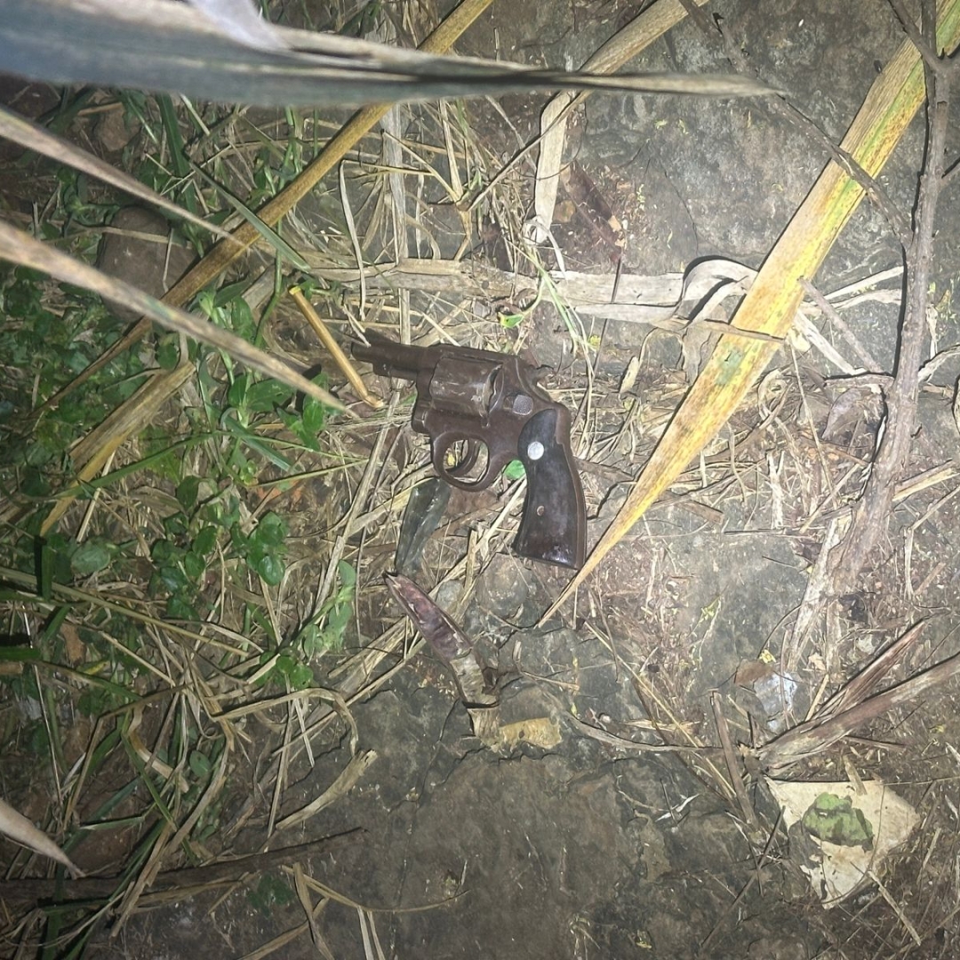 Com ele, a polícia apreendeu um revólver calibre 38 e um tablete de maconha pesando aproximadamente 702 gramas.