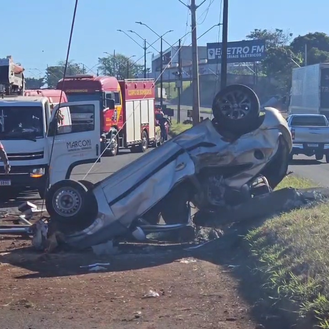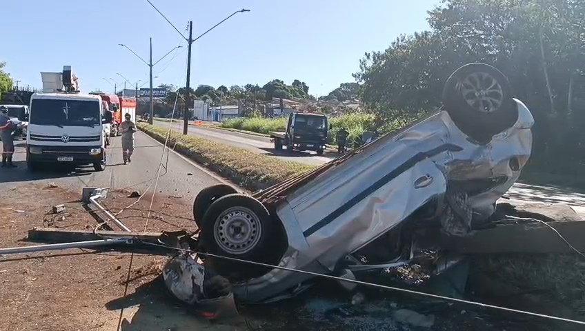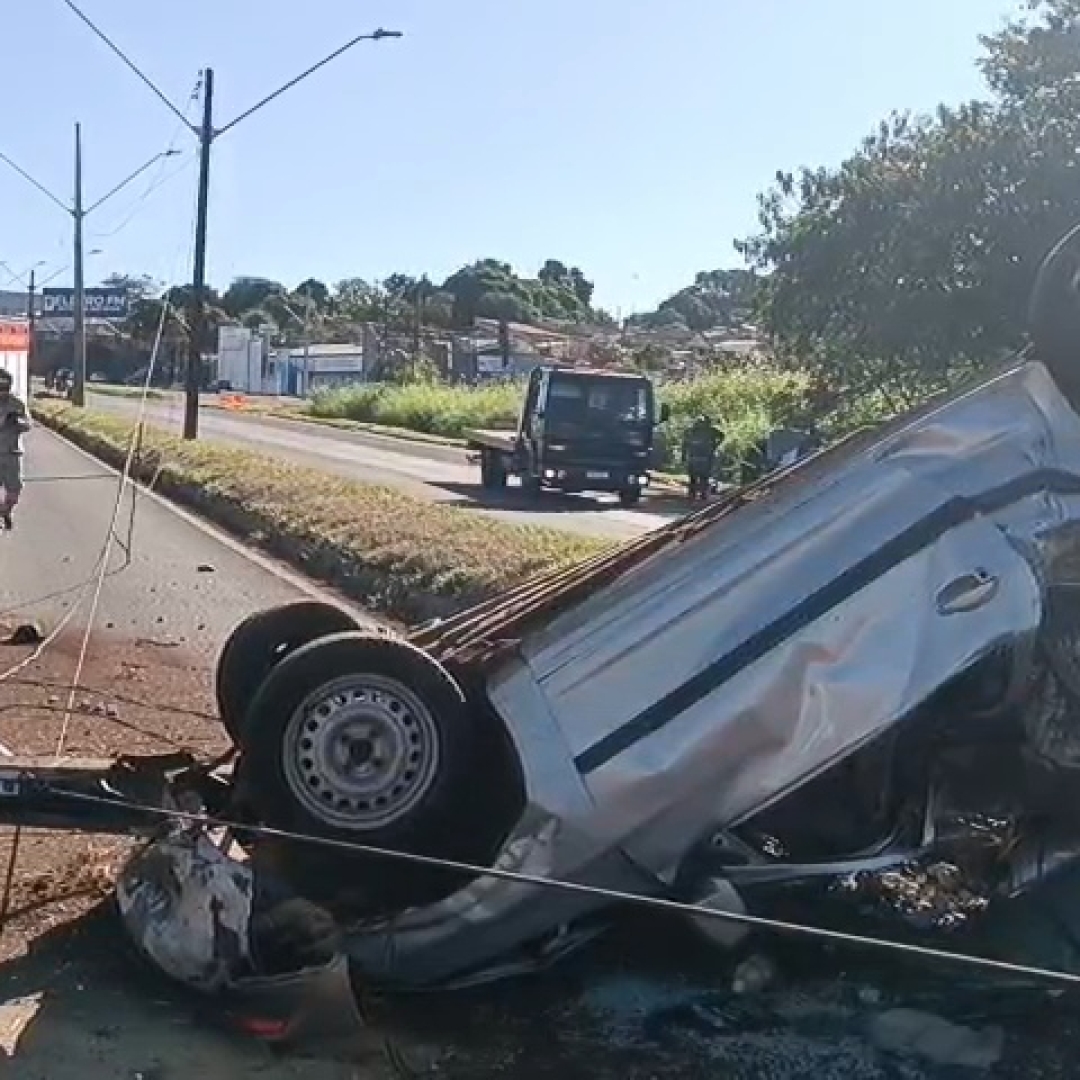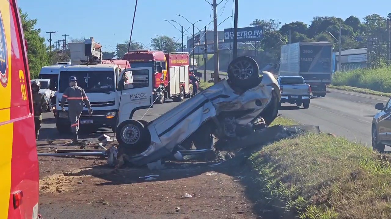 Duas pessoas ficaram gravemente feridas em um acidente ocorrido na tarde desta sexta-feira (30), na BR-369, em Londrina. A colisão, que envolveu um Chevrolet Celta e um Hyundai HB20, aconteceu na altura do km 144 da rodovia, nas proximidades do Ceasa. Um dos veículos chegou a derrubar um poste de energia elétrica, e ambos capotaram após o impacto.