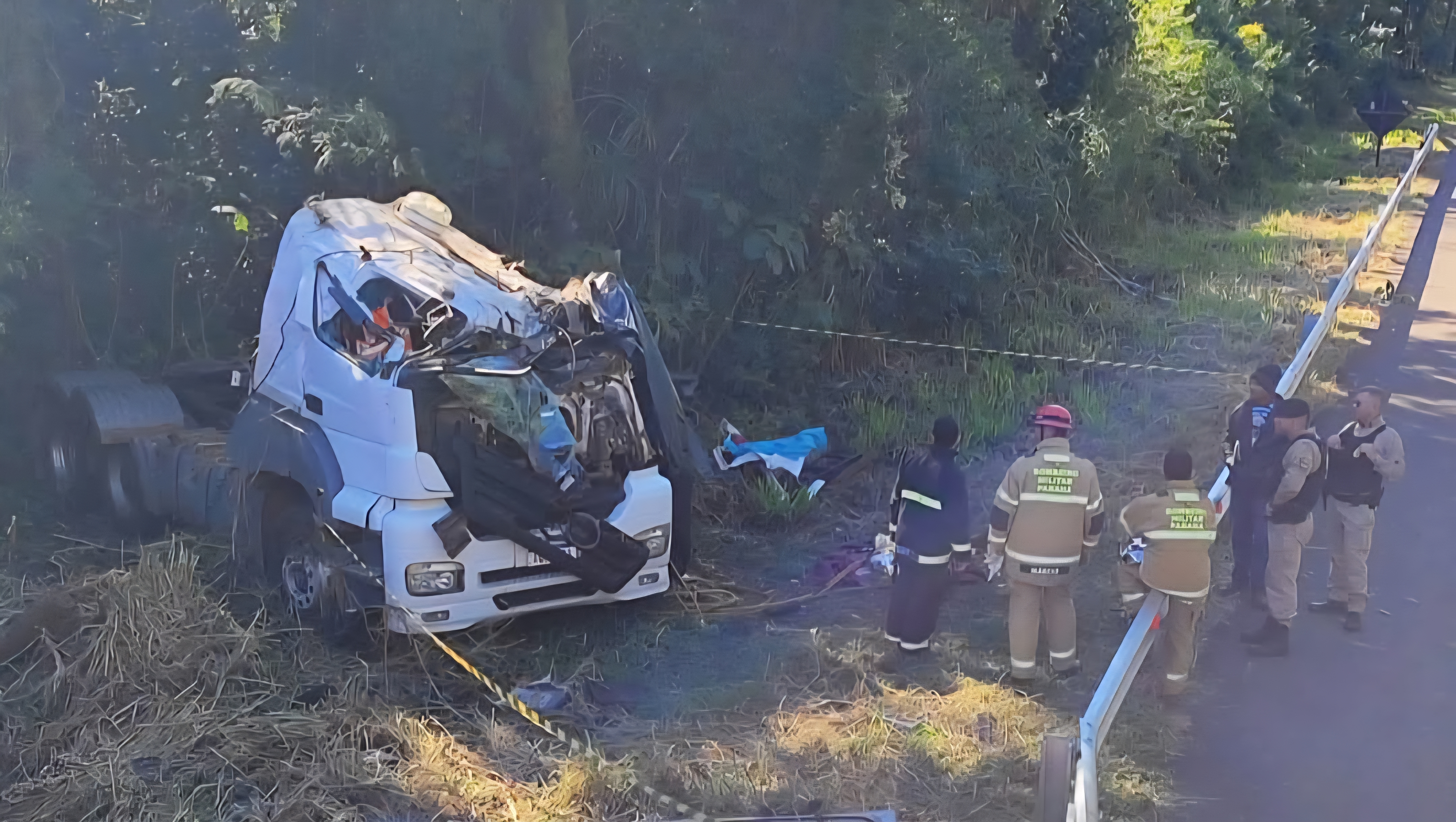 Um grave acidente de trânsito tirou a vida de um caminhoneiro na tarde desta sexta-feira (30), por volta das 13h15, na PR-487, nas proximidades da conhecida “Curva das Sete Cruzes”, em Nova Tebas, região central do Paraná.