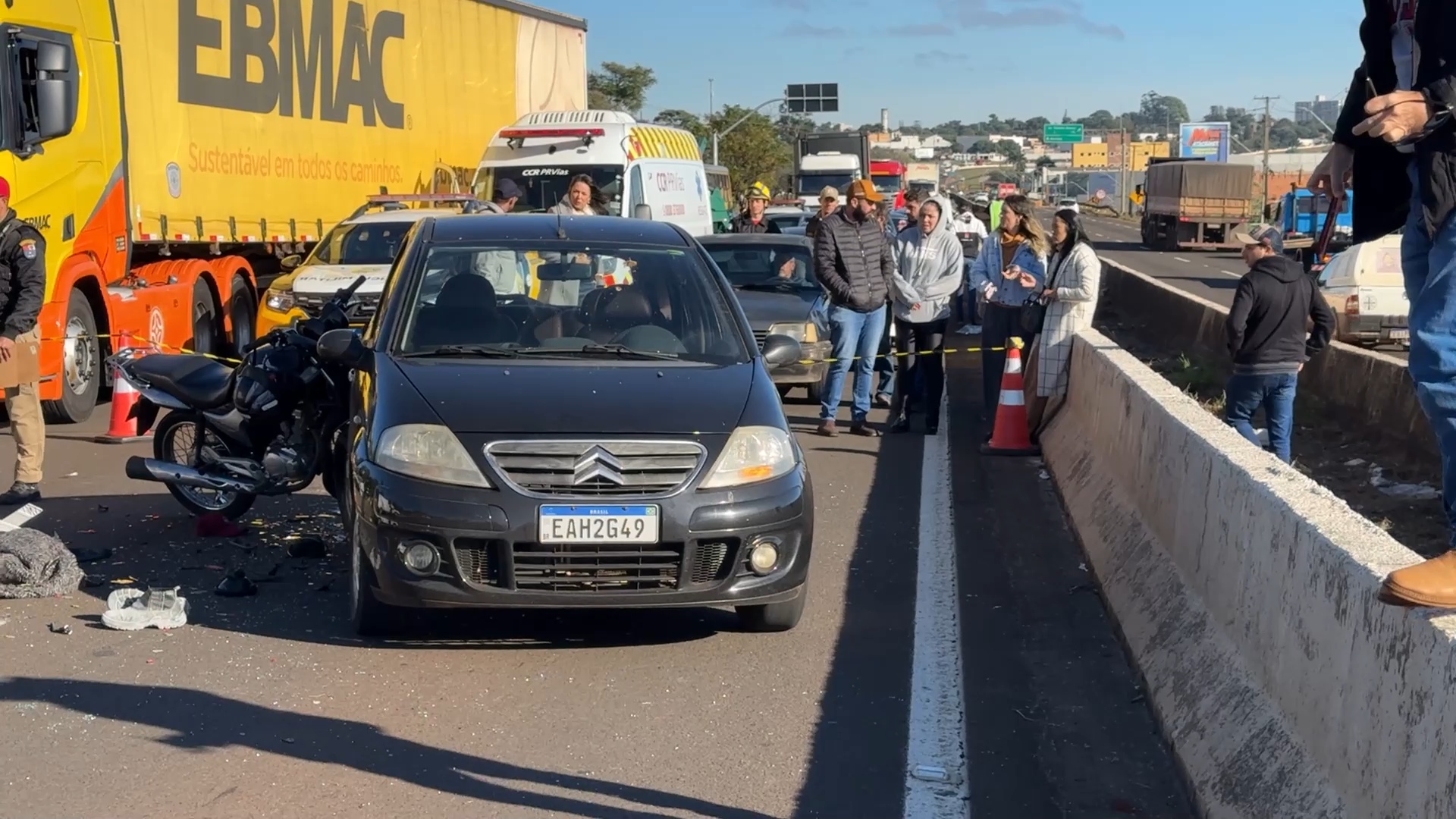 De acordo com o relato da motorista do carro à polícia, uma van que trafegava à frente parou abruptamente na pista, obrigando os veículos seguintes a reduzirem a velocidade. O motociclista, porém, não teve tempo hábil para frear e acabou colidindo na traseira do carro dela.