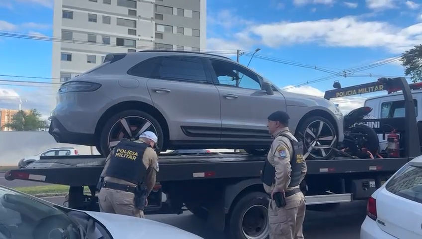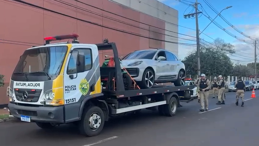 Um carro de luxo foi apreendido na tarde desta quinta-feira (3) durante a realização da Operação Cidade Segura, promovida pela Polícia Militar na zona sul de Londrina. O veículo, um Porsche modelo 2023 — que pode chegar a R$ 676 mil na versão GTS equipada com motor 2.9 Bi-Turbo — foi parado em um bloqueio e teve a documentação verificada pelas equipes policiais.