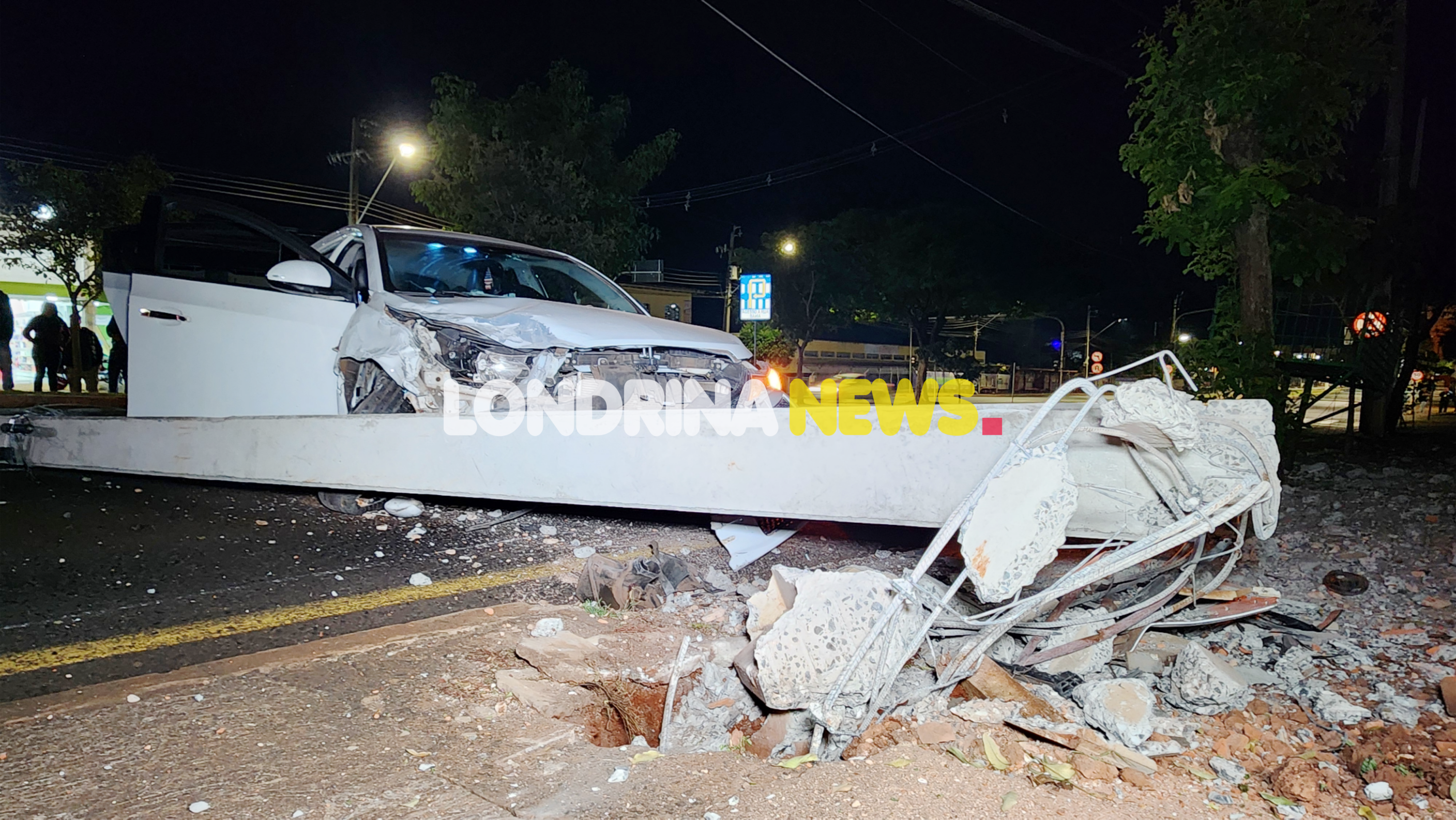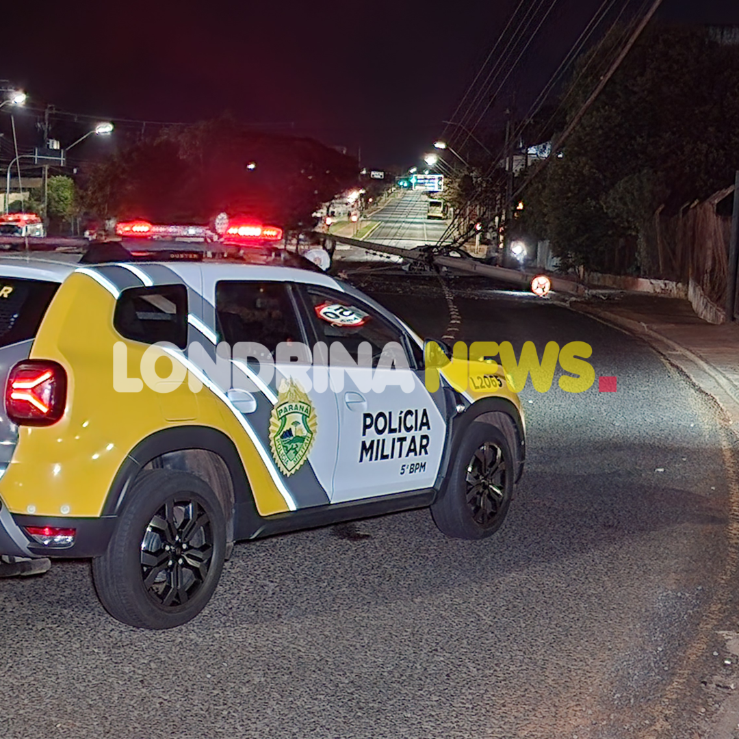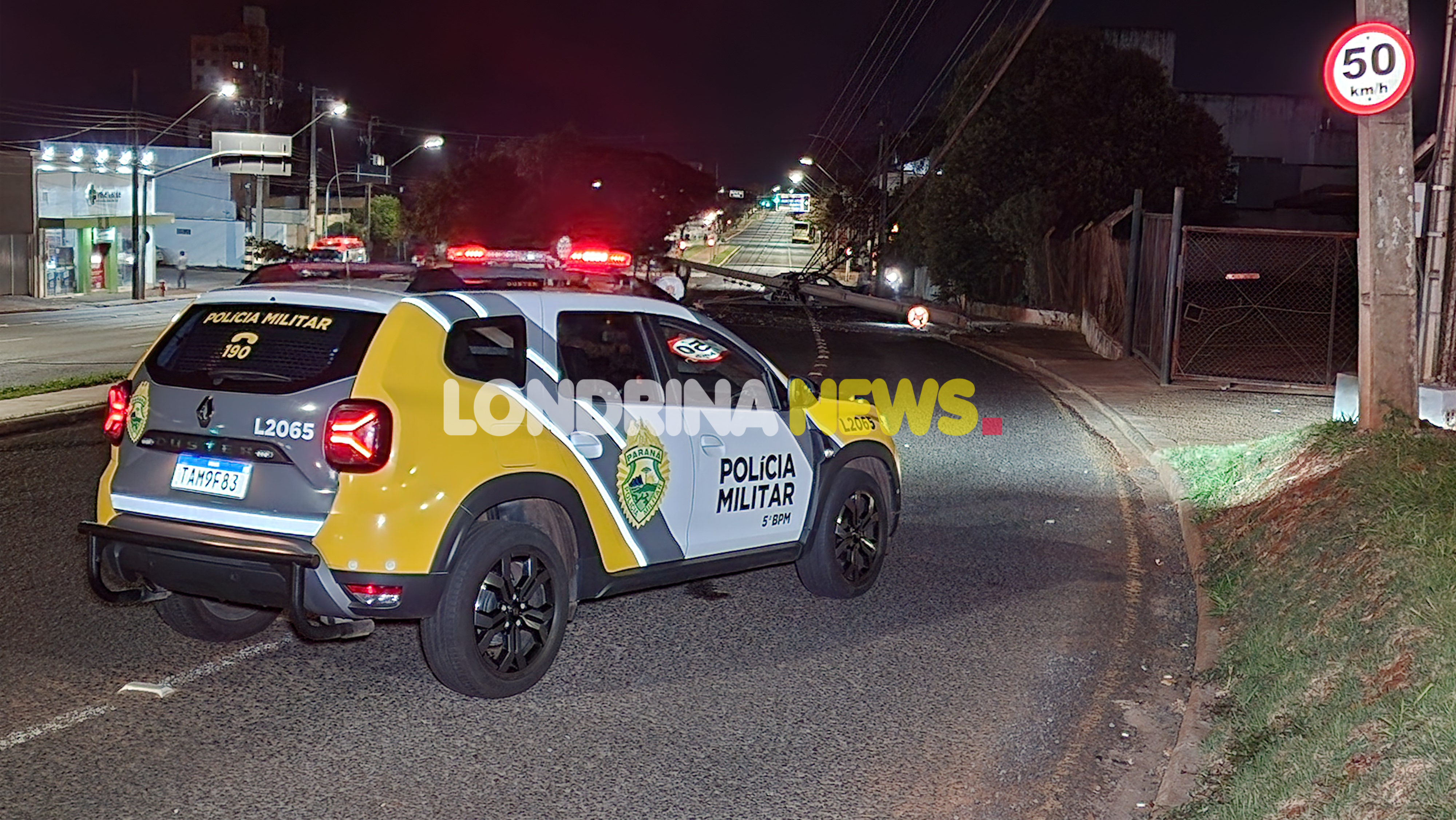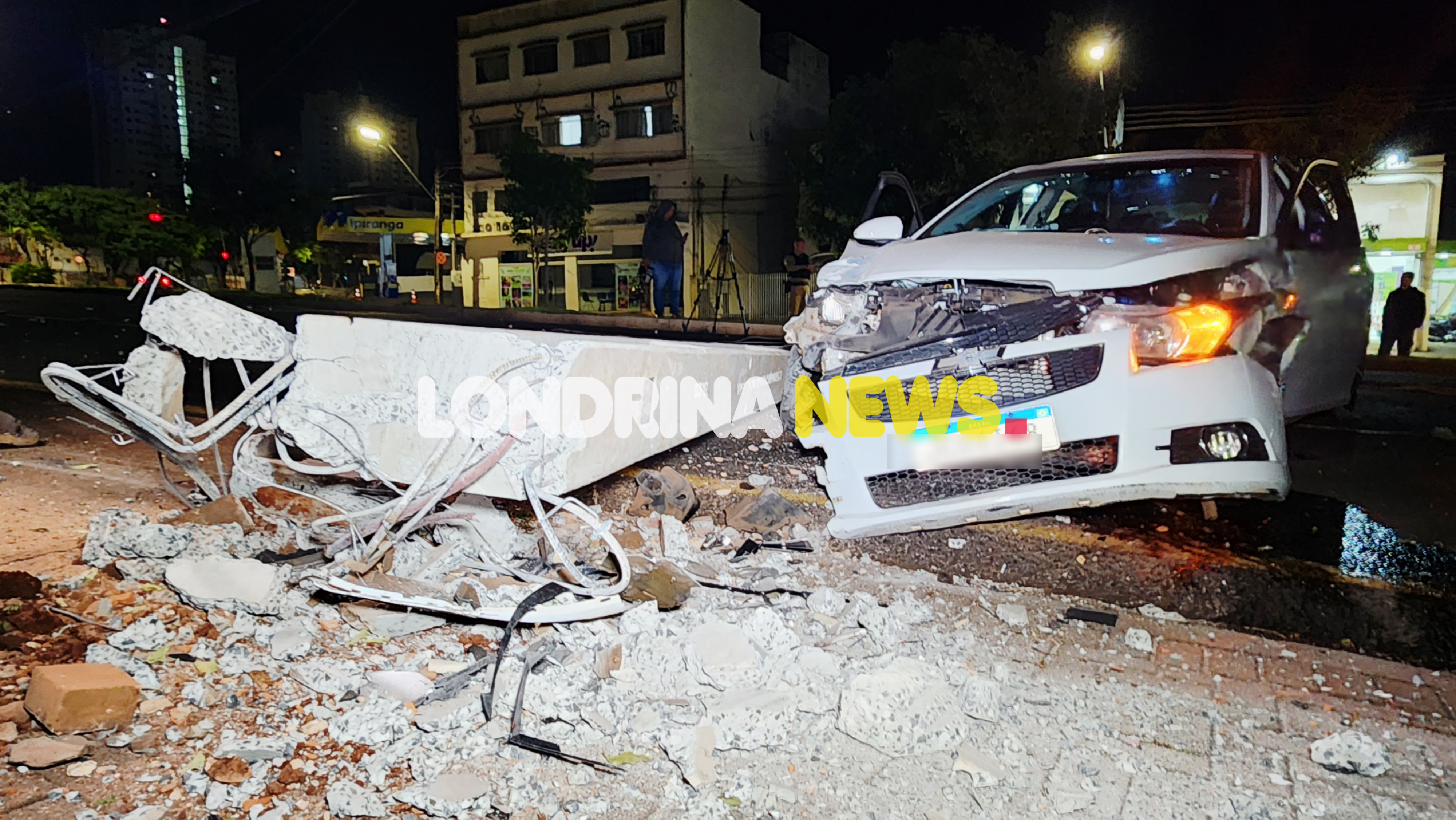 Um acidente na noite deste domingo (20) causou transtornos no trânsito e risco à segurança no centro de Londrina. Um Chevrolet Cruze desgovernado derrubou dois postes de iluminação pública na avenida Arcebispo Dom Geraldo Fernandes (Leste-Oeste), entre as ruas Pernambuco e Professor João Cândido, provocando a interdição parcial da via.