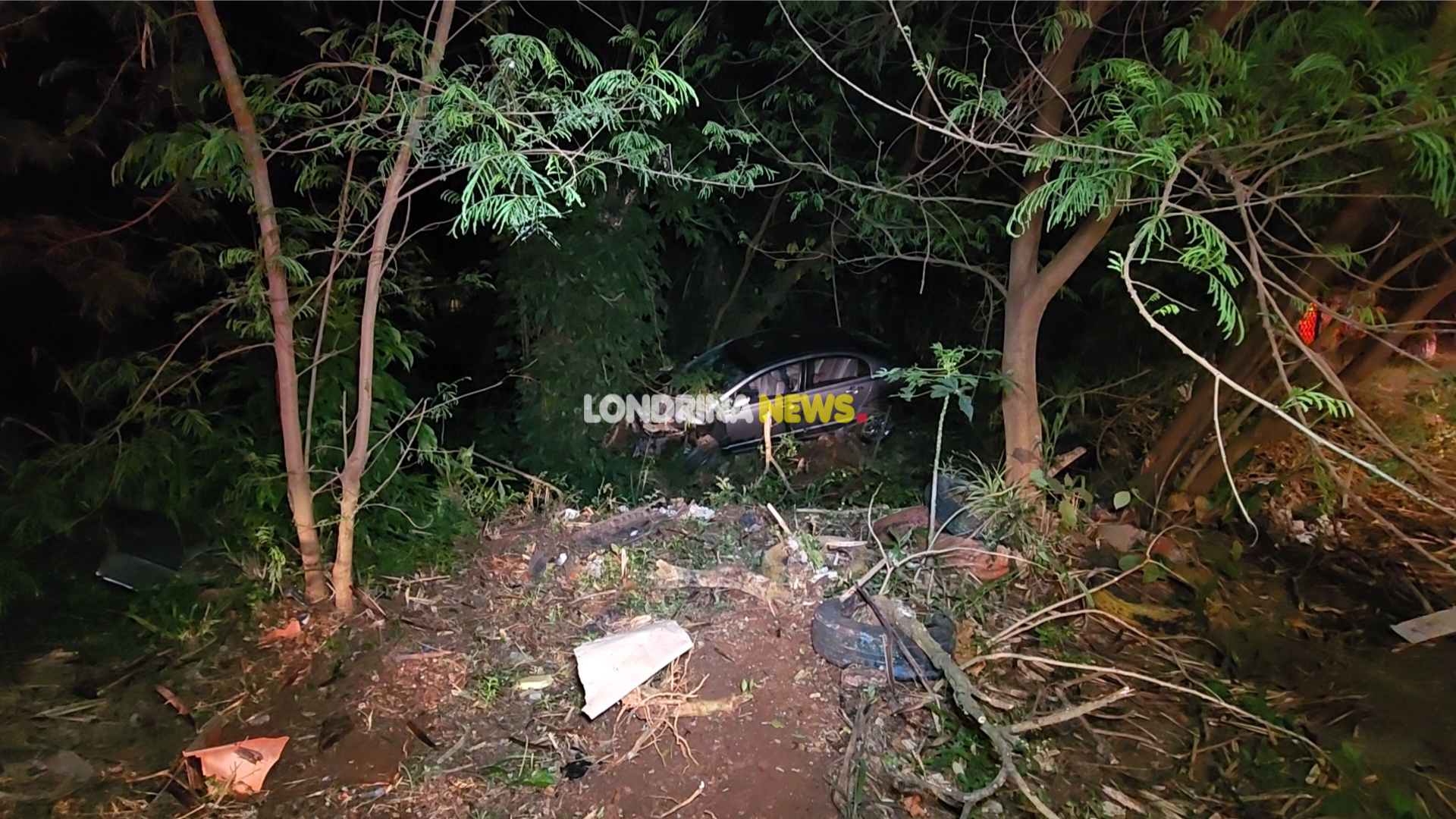Um grave acidente mobilizou equipes de resgate na madrugada desta segunda-feira (21) na zona norte de Londrina. Um veículo ocupado por seis pessoas caiu em uma ribanceira em um fundo de vale no final da rua André Emilio Guergoletto e começo da rua Senegal, no Parque Ouro Verde.