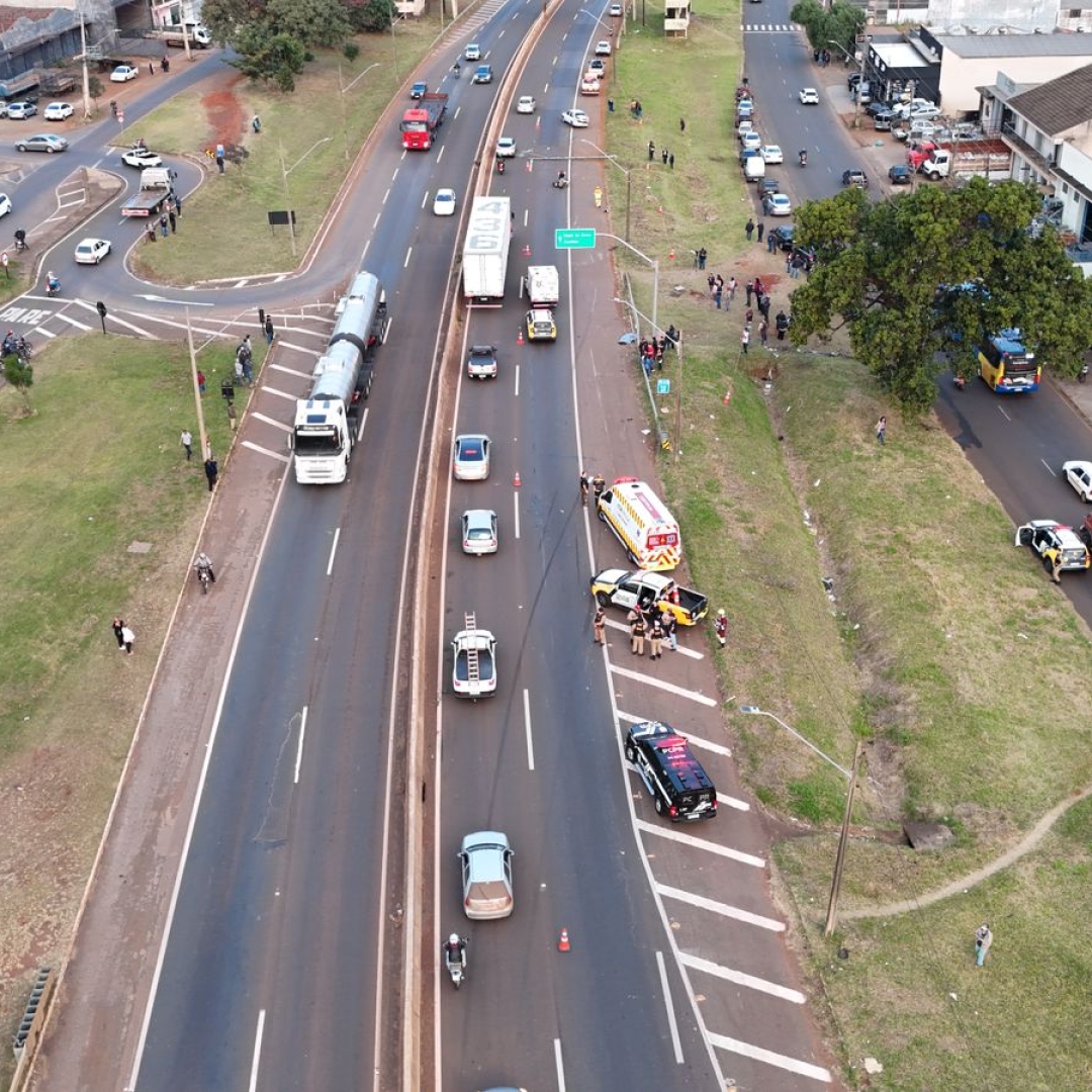 Uma mulher de 47 anos, identificada como Patrícia Rodrigues Feliciano, morreu em um grave acidente registrado na tarde desta quinta-feira (24), no km 69 da PR-445, no perímetro urbano de Londrina. O acidente aconteceu nas proximidades da passarela de pedestres que liga os bairros Parque Ouro Branco e Jardim Tarobá, na zona sul da cidade.