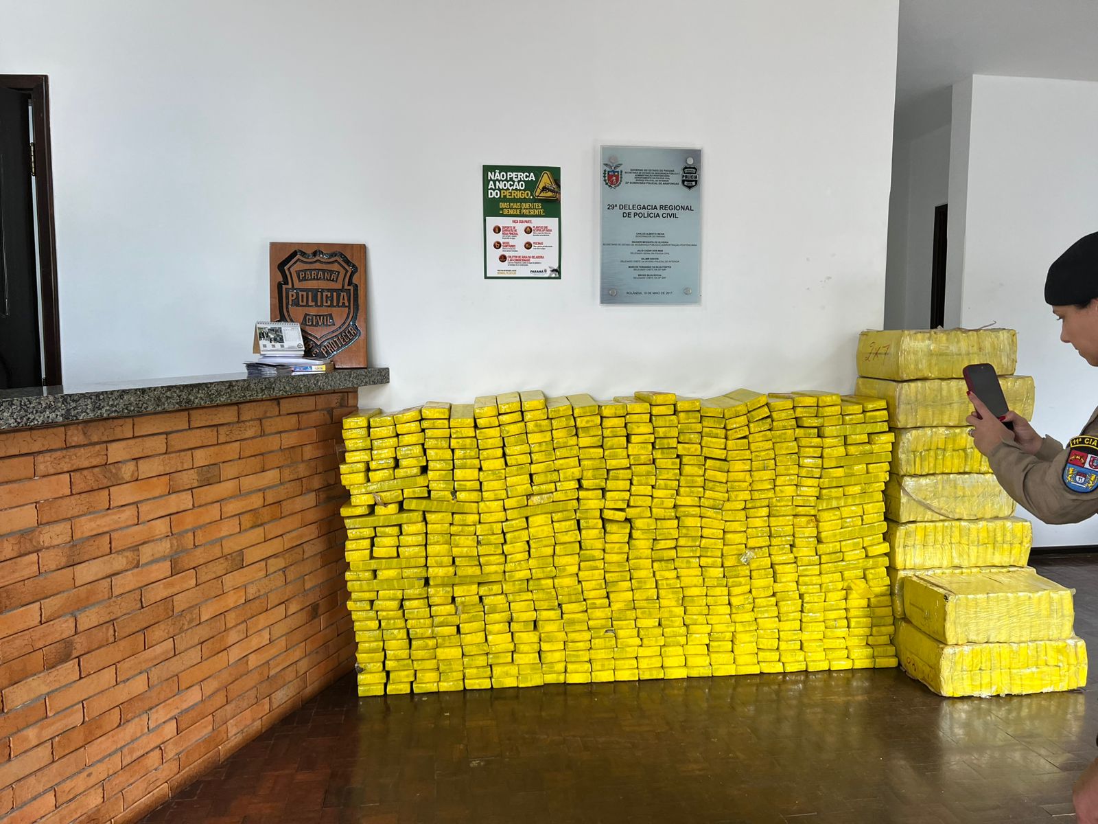 Na tarde desta segunda-feira (4), uma operação conjunta resultou na apreensão de aproximadamente 627 quilos de maconha durante uma abordagem realizada na BR-369, em Rolândia, no norte do Paraná. A droga estava sendo transportada no porta-malas de um veículo, que foi interceptado por forças de segurança que atuam no combate ao contrabando, descaminho, tráfico de drogas e armas.