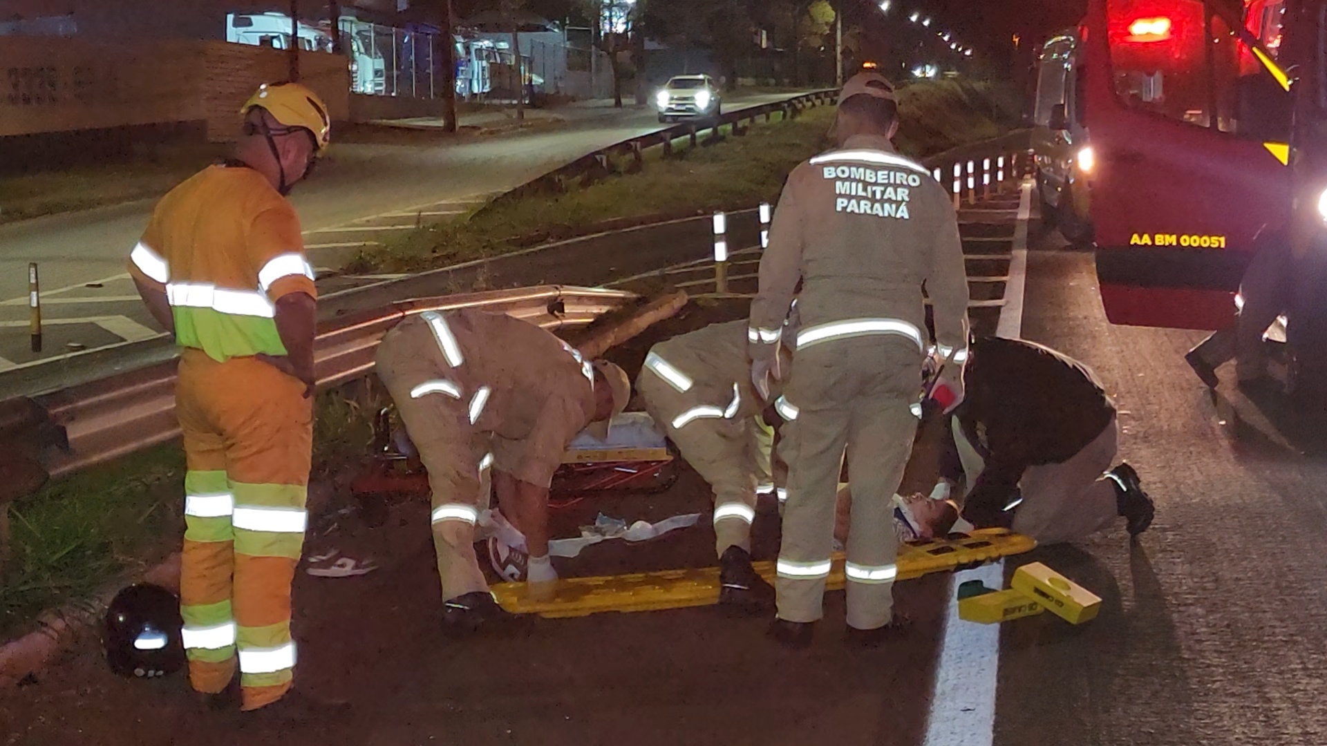 Na madrugada deste sábado (6), um casal ficou gravemente ferido após sofrer uma queda de moto na rodovia PR-445, na altura do km 78, no viaduto com a avenida Arthur Thomas, na zona oeste de Londrina.
