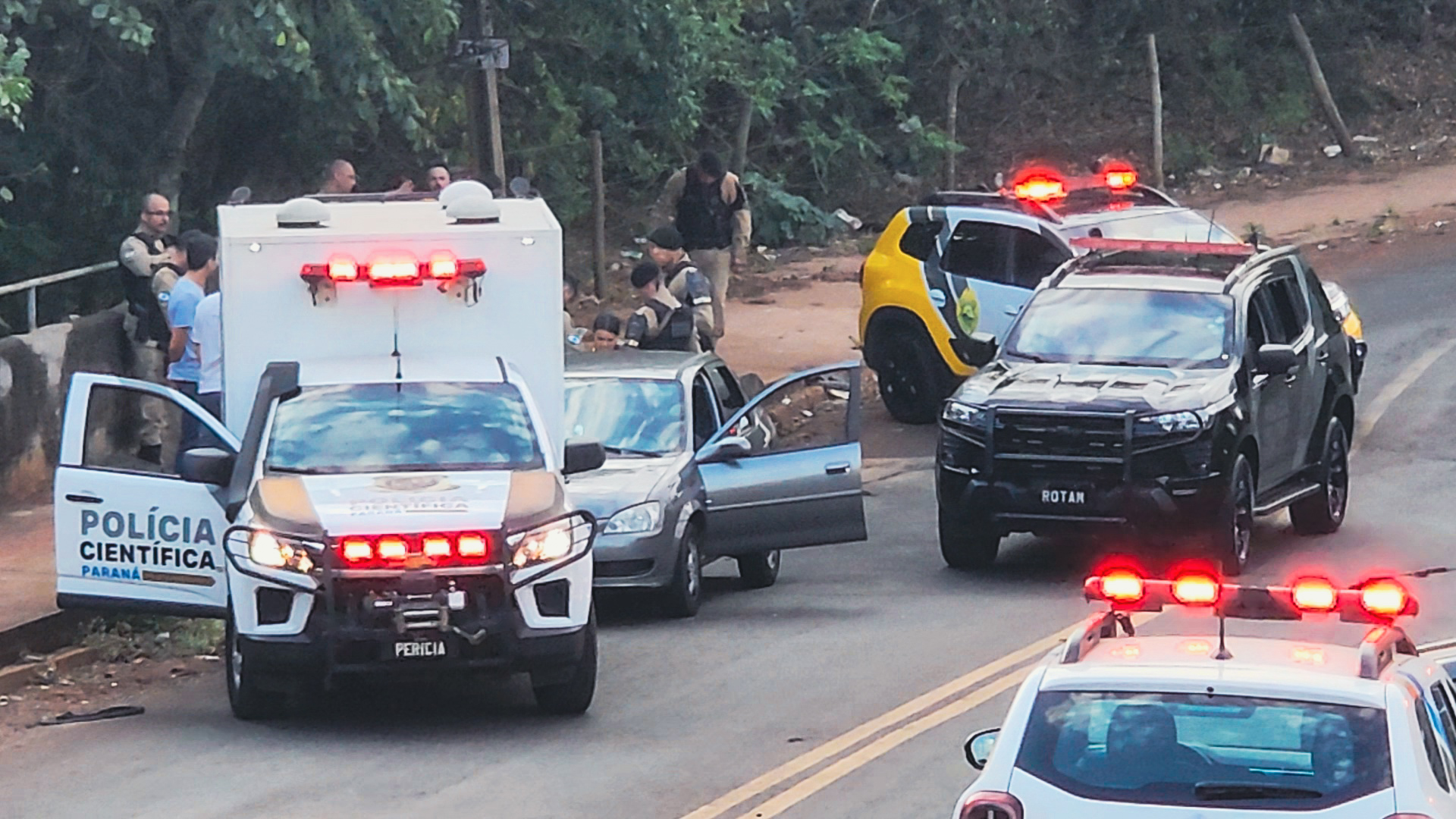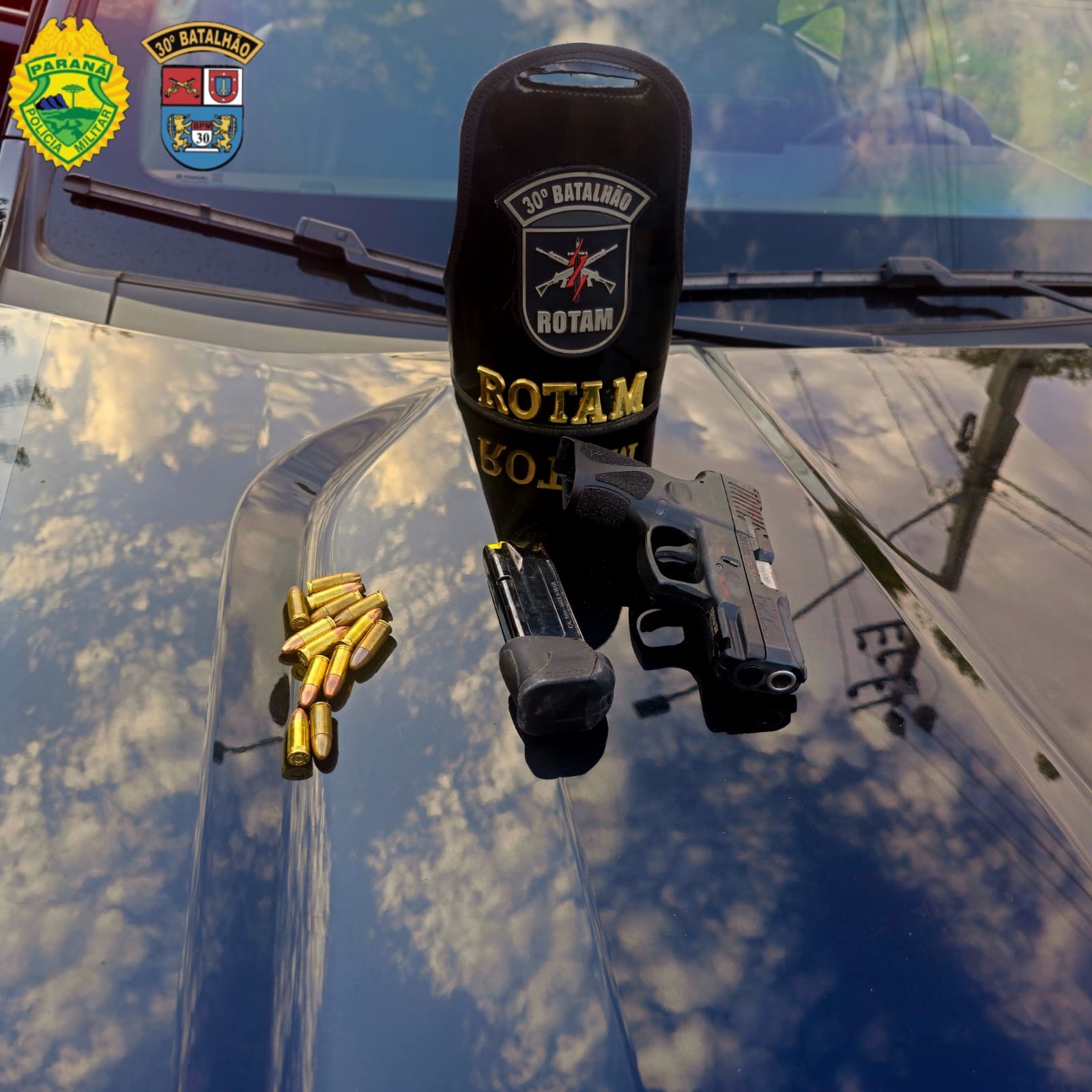 De acordo com a PM, equipes da Rotam receberam informações de que um indivíduo considerado de alta periculosidade, com oito mandados de prisão em aberto — sendo quatro deles por tráfico de drogas — estaria em um veículo Corsa de cor cinza.