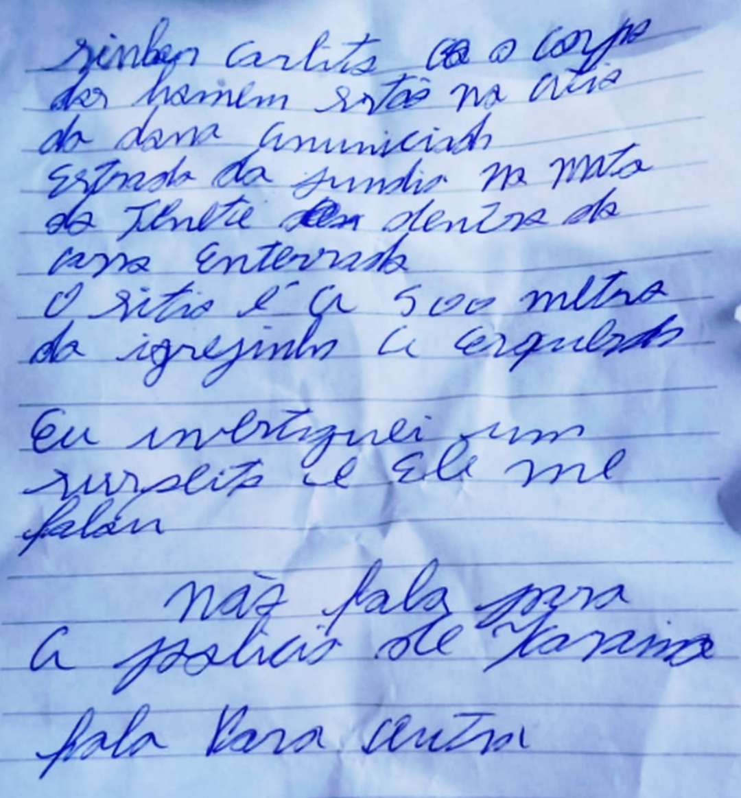 A investigação, inicialmente tratada como desaparecimento, passou a ser conduzida como homicídio após o surgimento de novas evidências. Na última sexta-feira (12), a Fiat Toro usada pelo grupo foi encontrada enterrada em um bunker, com perfurações de tiros e manchas de sangue. A localização foi indicada por uma carta escrita à mão deixada na porteira da casa do pai de Alencar.