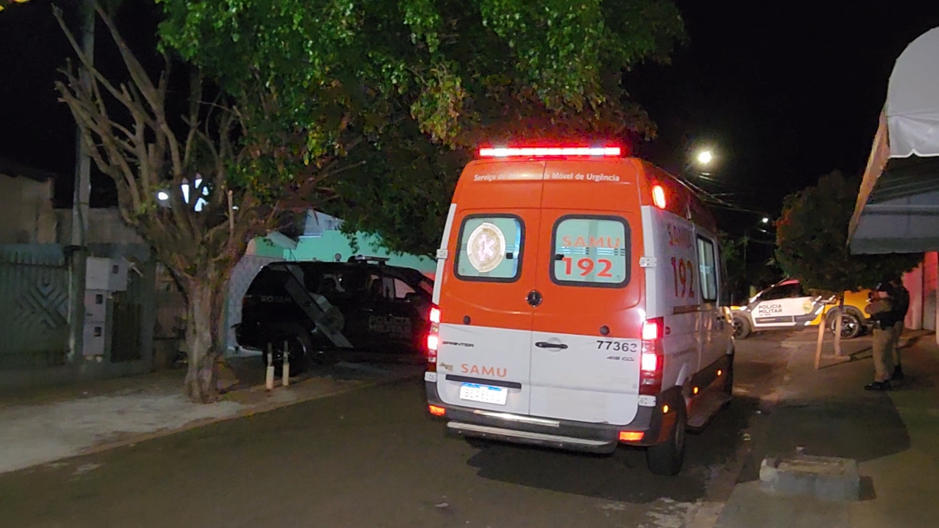 Com a chegada da equipe Rotam, os policiais visualizaram o homem no telhado de uma residência localizada na rua Arara Azul, no bairro Violim. Segundo a corporação, ao receber voz de abordagem, o suspeito reagiu e apontou a arma em direção aos agentes, que revidaram os disparos. Ele foi atingido e caiu sobre o telhado.