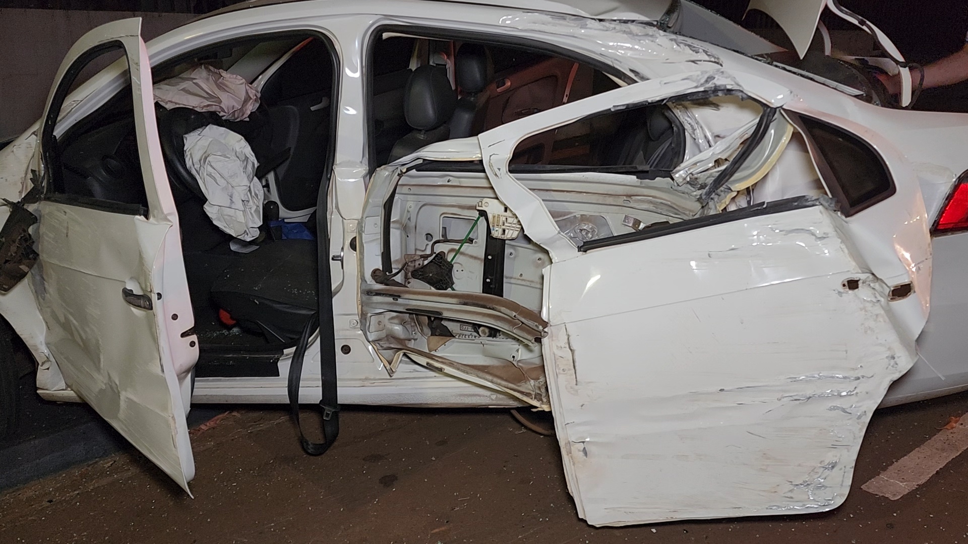 A vítima foi encontrada dentro do carro pelas equipes de socorro e retirada para atendimento. De acordo com os socorristas, ela estava consciente, orientada e com sinais vitais estáveis, mas apresentava dores na região do pescoço (cervicalgia).