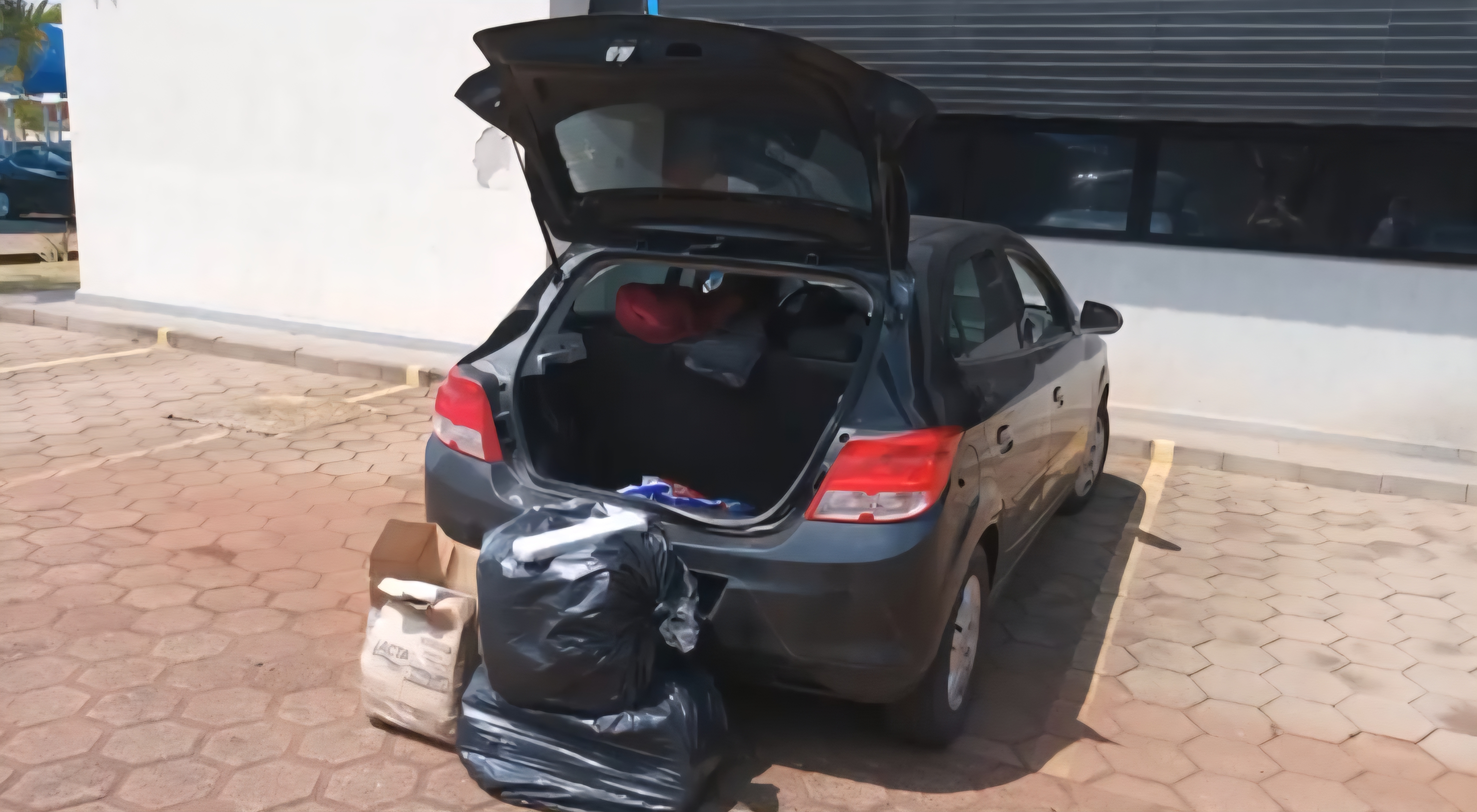 Durante a ação, as forças de segurança identificaram e abordaram um Chevrolet Onix preto, conduzido por E.C.C., de 45 anos, que estava acompanhado da esposa, V.C.M.A.L (45). No porta-malas do veículo, os policiais encontraram diversos fardos contendo a droga, totalizando 77 quilos de substância análoga à maconha.
