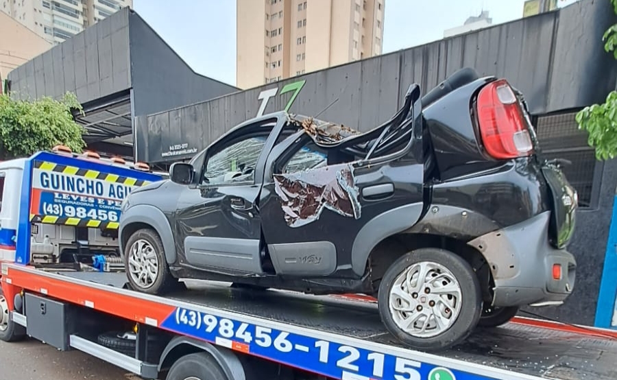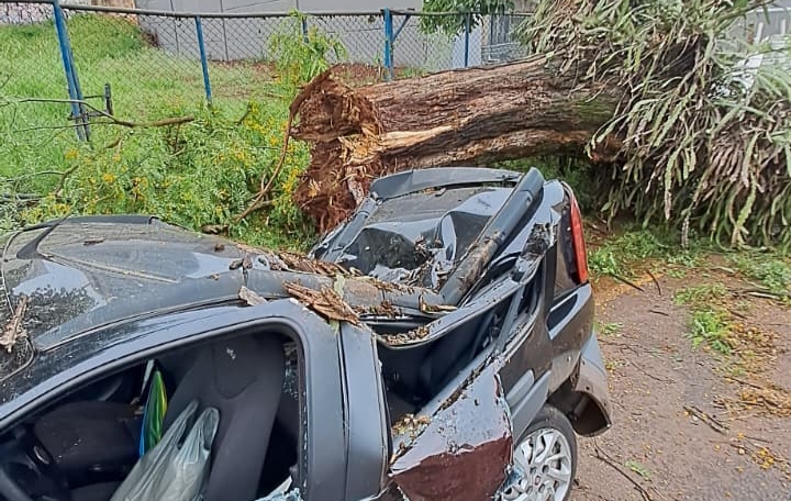 Uma árvore de grande porte caiu na manhã desta segunda-feira (13) sobre um Fiat Uno que estava estacionado na Avenida Juscelino Kubitschek (JK), nas proximidades da Rua Piauí, região central de Londrina. O incidente ocorreu após as fortes chuvas que atingem a cidade desde o domingo (12).