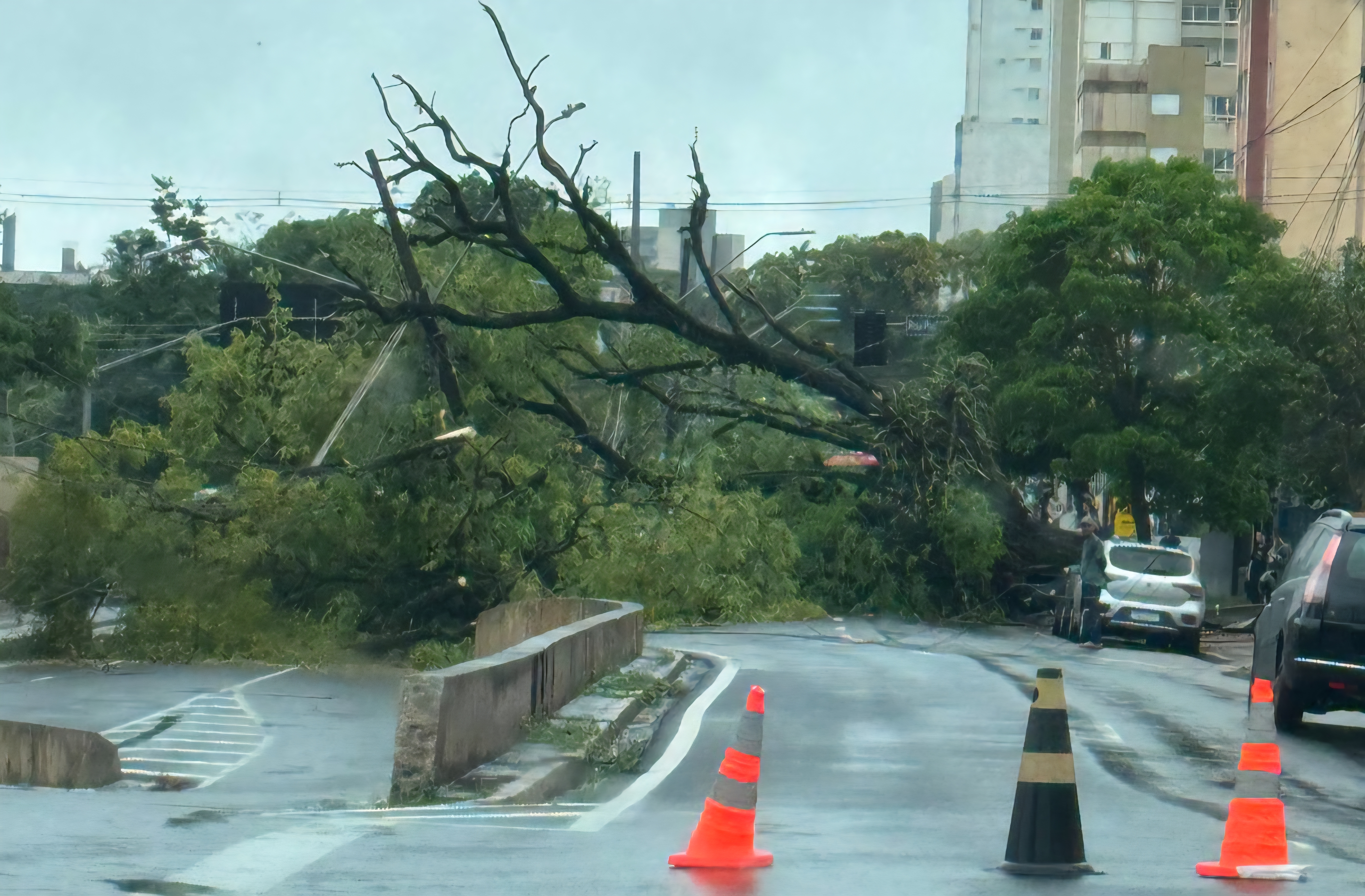 Apesar do susto, ninguém ficou ferido. O veículo atingido teve danos consideráveis na parte superior, e a Defesa Civil deve emitir um relatório técnico sobre o ocorrido.