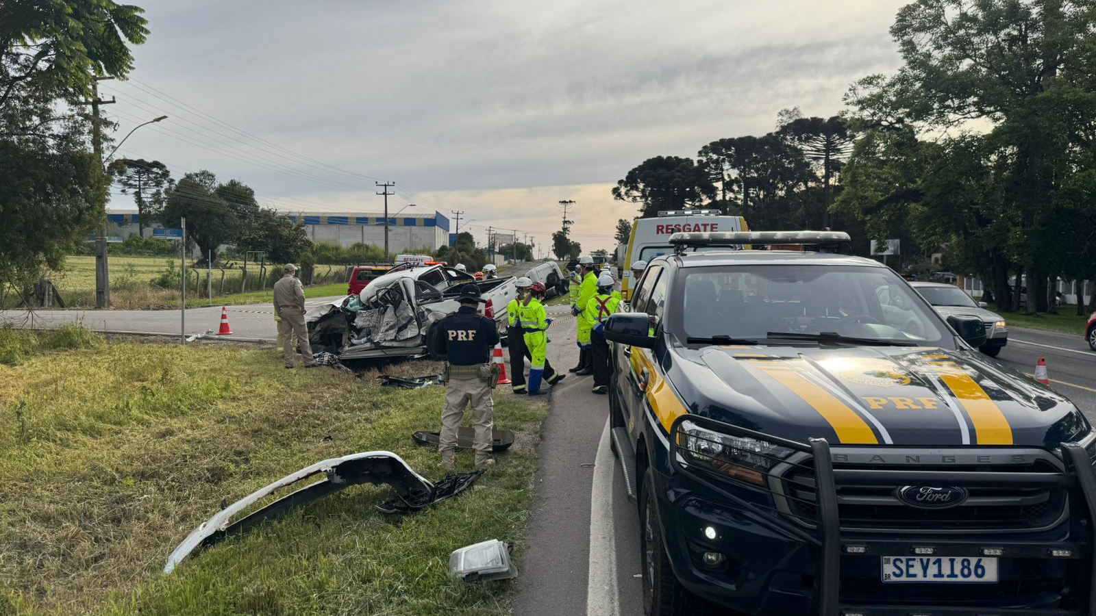 Um grave acidente registrado na tarde deste sábado (25) resultou na morte de duas pessoas e deixou uma criança ferida na BR-476, em Araucária, na região metropolitana de Curitiba.