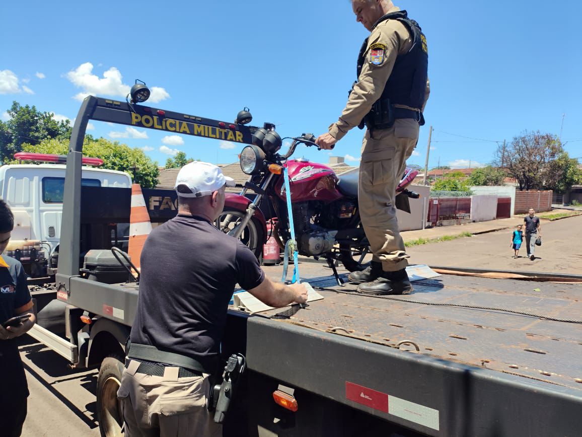 Diante da situação, os policiais deram voz de abordagem. O suspeito entregou a criança à equipe e se rendeu. Ele não portava nenhum material ilícito, mas, em conversa com os militares, confessou o furto da motocicleta ocorrido na avenida Angelina Ricci Vezozo com a avenida Saul Elkind, e indicou o local onde a havia escondido.