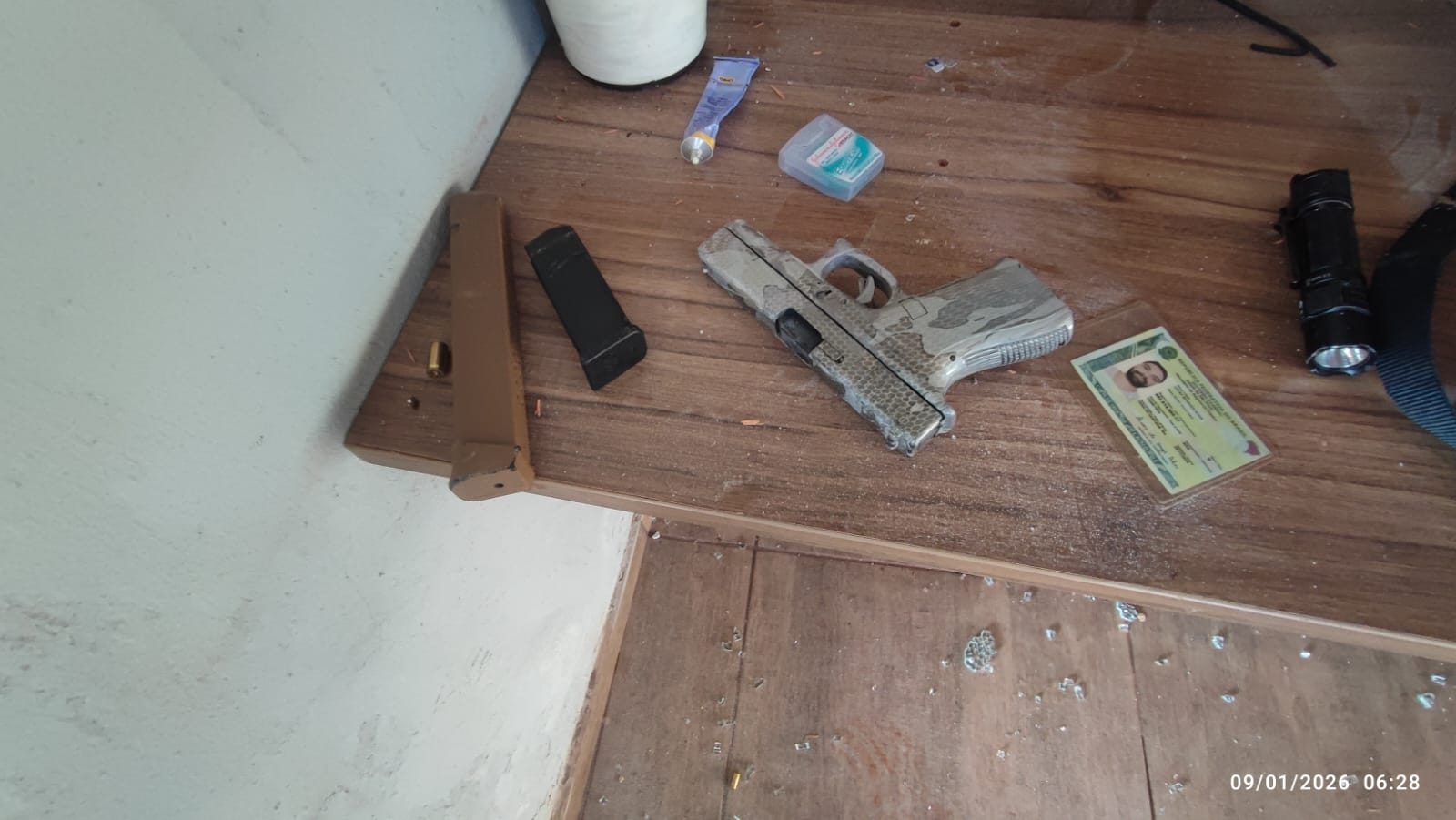 No momento em que os policiais adentraram o quintal da residência, foram recebidos por disparos de arma de fogo vindos do interior do imóvel, que acabaram atingindo dois policiais militares. Em seguida, o suspeito teria se deslocado para dentro da casa, retirado o nicho do banheiro com a intenção de fugir e, ao avistar novamente os policiais, efetuou novos disparos. Diante da injusta agressão, os militares reagiram para conter a ameaça.