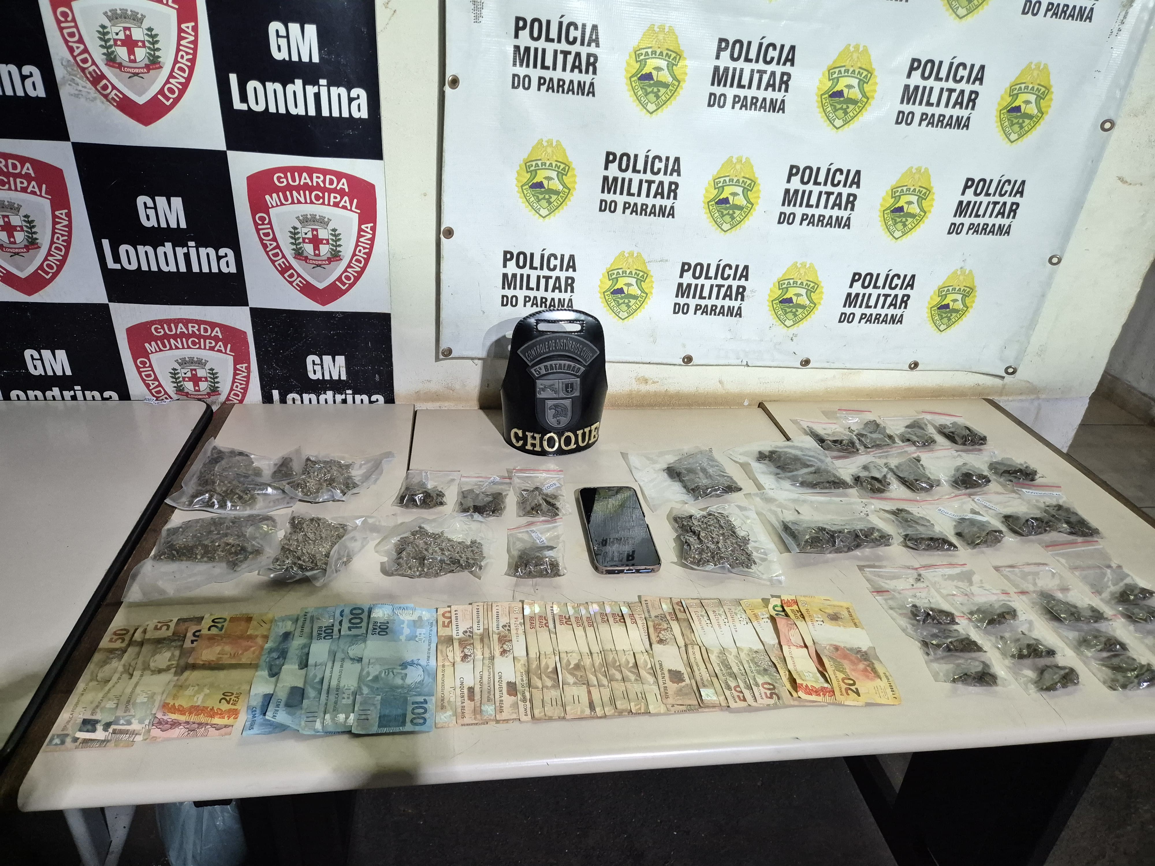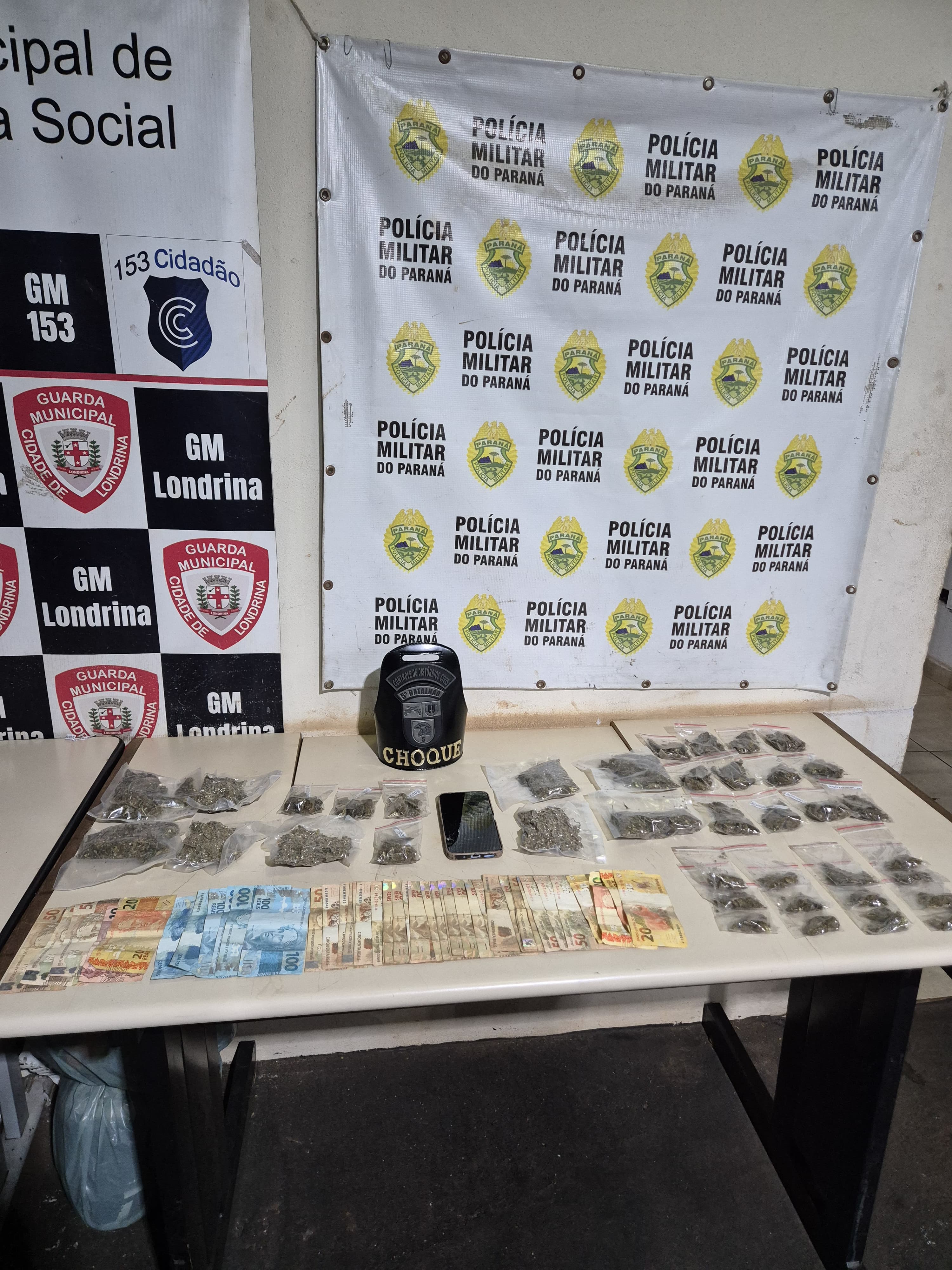 Policiais militares da Companhia de Choque prenderam um homem de 23 anos pelo crime de tráfico de drogas na noite desta segunda-feira (12), por volta das 20h30, na rua Denis Papin, na Vila Industrial, zona oeste de Londrina.