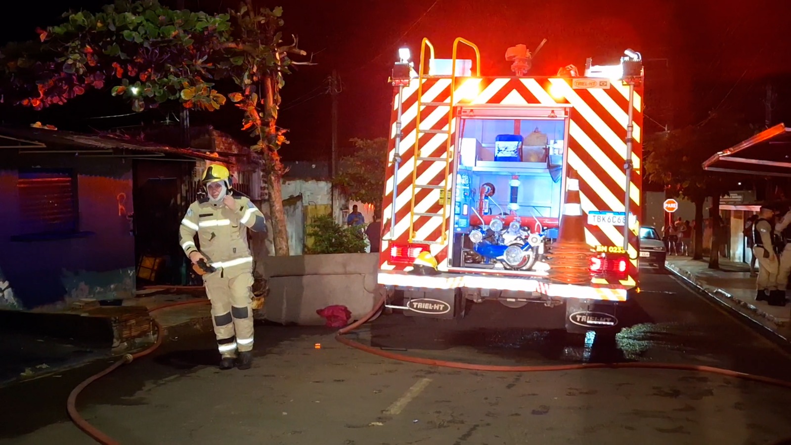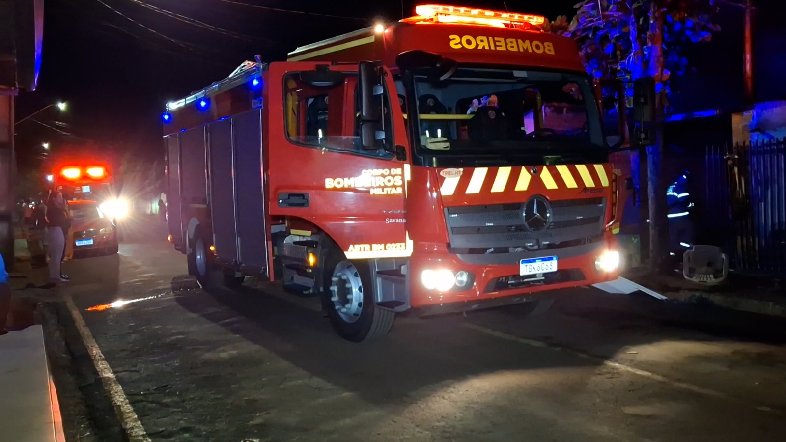 Na sequência, o Corpo de Bombeiros foi mobilizado, com o envio de um caminhão ABTR e uma ambulância do SIATE para o atendimento da ocorrência e o controle das chamas.
