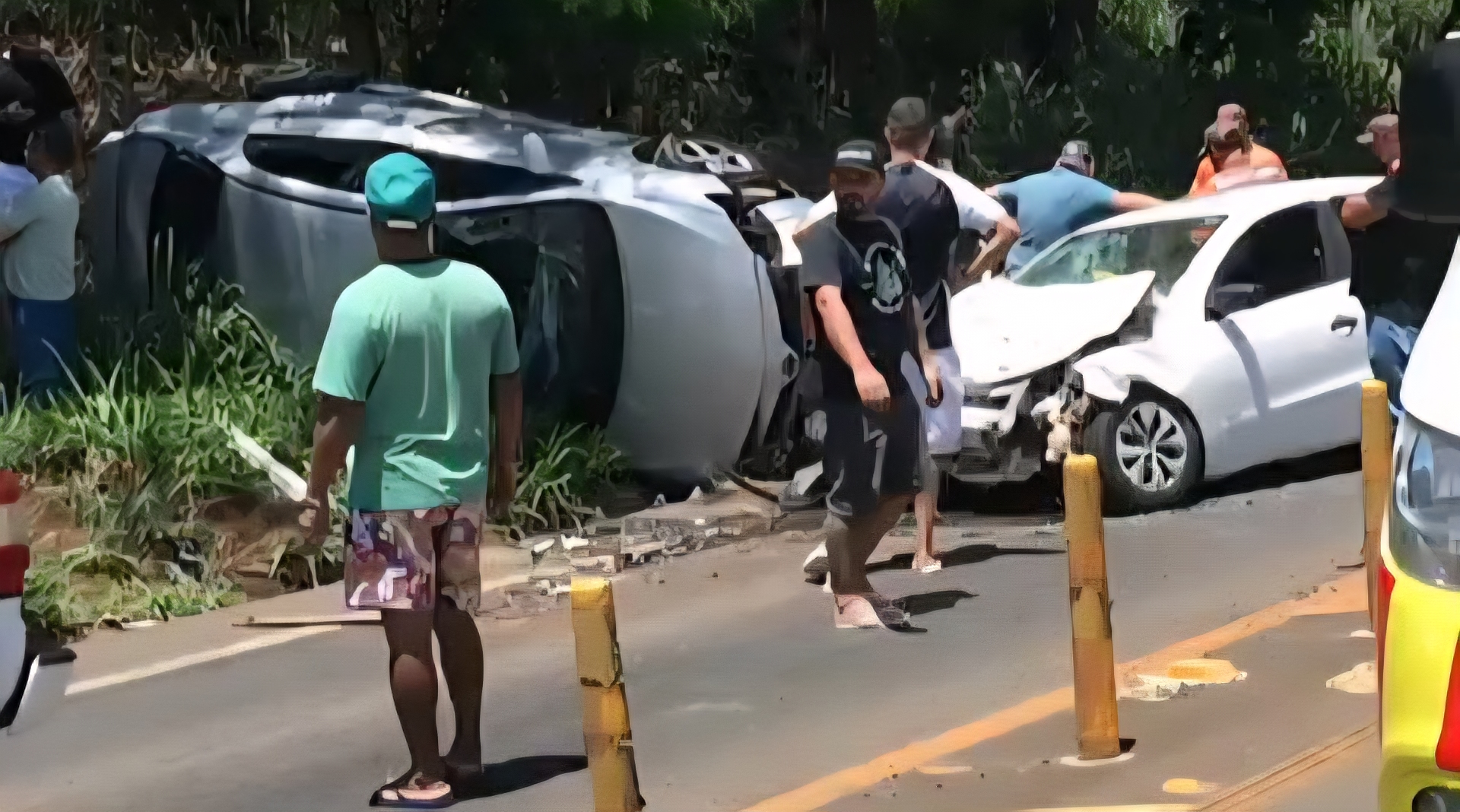 No Gol estavam quatro ocupantes. O motorista, de 38 anos, também ficou ferido e foi levado ao Hospital Evangélico pelo Siate. Um passageiro, de 78 anos, identificado como Valdomiro Neves de Oliveira, não resistiu aos ferimentos e morreu no local. Duas passageiras — uma criança de 7 anos e uma mulher cuja idade não foi informada — ficaram feridas e foram socorridas pelo Samu, sendo encaminhadas ao hospital.