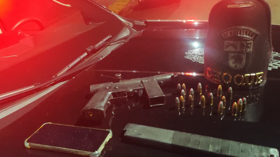 Uma submetralhadora de fabricação caseira foi apreendida com o suspeito. O veículo roubado e o dinheiro levado da vítima foram recuperados.