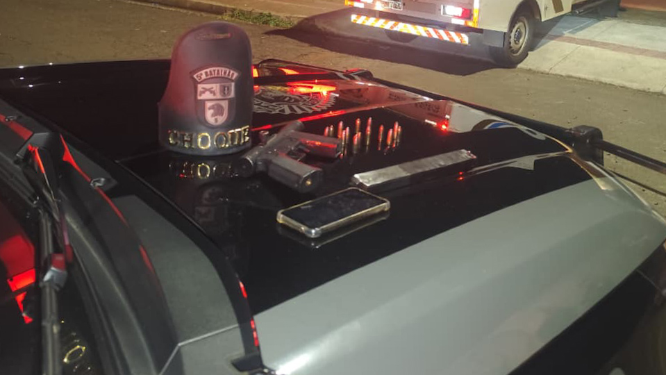 Após tomarem conhecimento do roubo, equipes da Polícia Militar iniciaram diligências. Pouco tempo depois, o veículo foi localizado por uma equipe da Guarda Municipal na região do Conjunto Jamile Dequech. Na ocasião, o condutor desobedeceu às ordens de parada e fugiu.