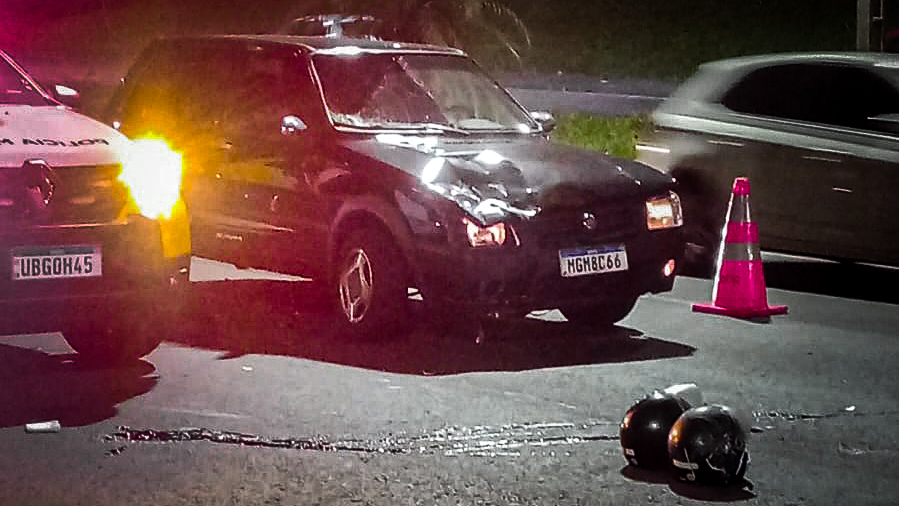 Neste momento, um veículo Fiat Uno, conduzido por um jovem de 20 anos que trafegava logo atrás, acabou colidindo violentamente contra a motocicleta. Com o forte impacto, o motociclista foi arremessado por cerca de 40 metros do ponto da batida.
