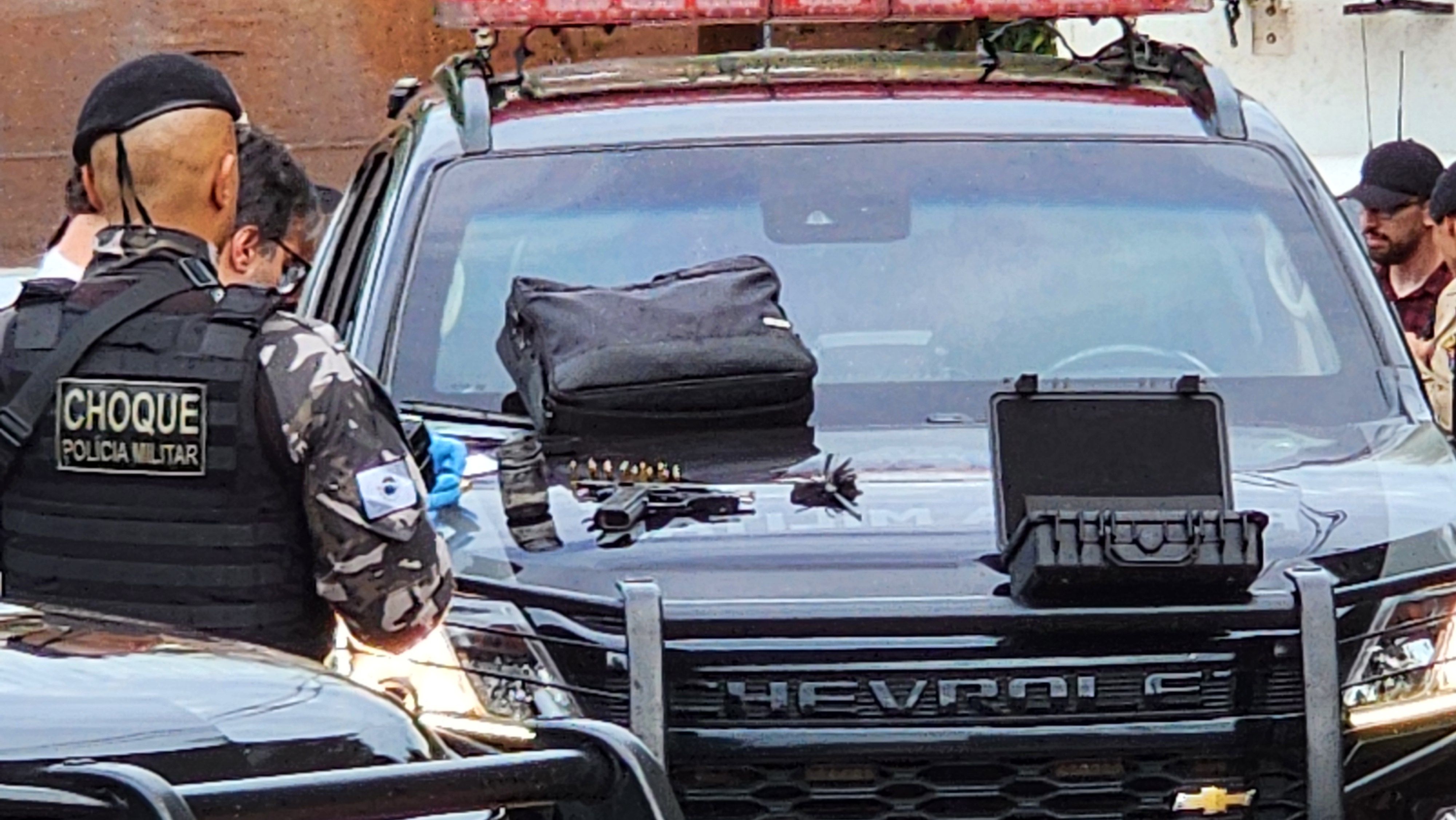De acordo com a Polícia Militar, os agentes receberam informações de que um indivíduo identificado como Ualas Redressa de Alencar, que possuía um mandado de prisão em aberto pelo crime de tráfico de drogas, estaria circulando pela região em uma caminhonete Toyota Hilux, de cor preta.